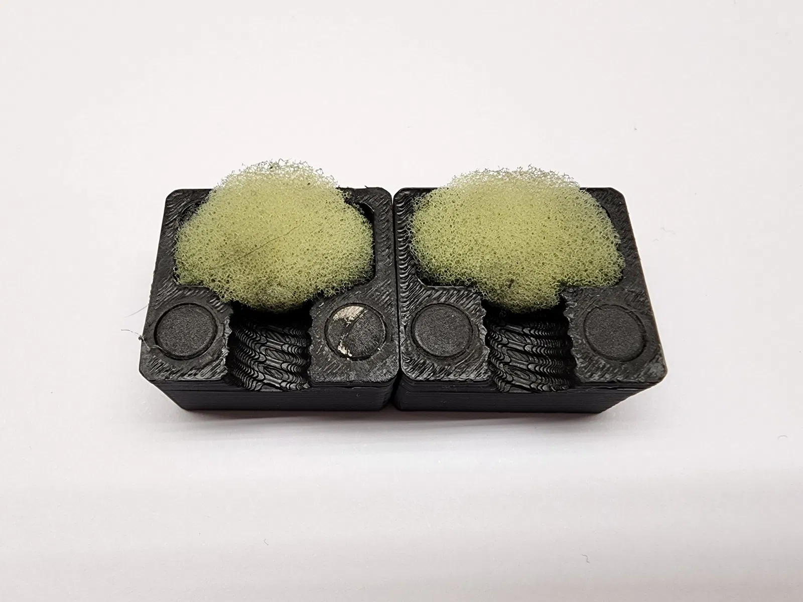 Tôi đã thiết kế một thiết bị đơn giản này sử dụng bốn nam châm 6x3 và miếng bọt biển nhà bếp thấm cồn isopropyl để làm sạch trục dẫn một cách triệt để mà không cần phải tháo rời. Thiết bị làm sạch này sẽ ôm lấy trục dẫn và sẽ di chuyển trên trục dẫn chỉ bằng cách di chuyển trục.