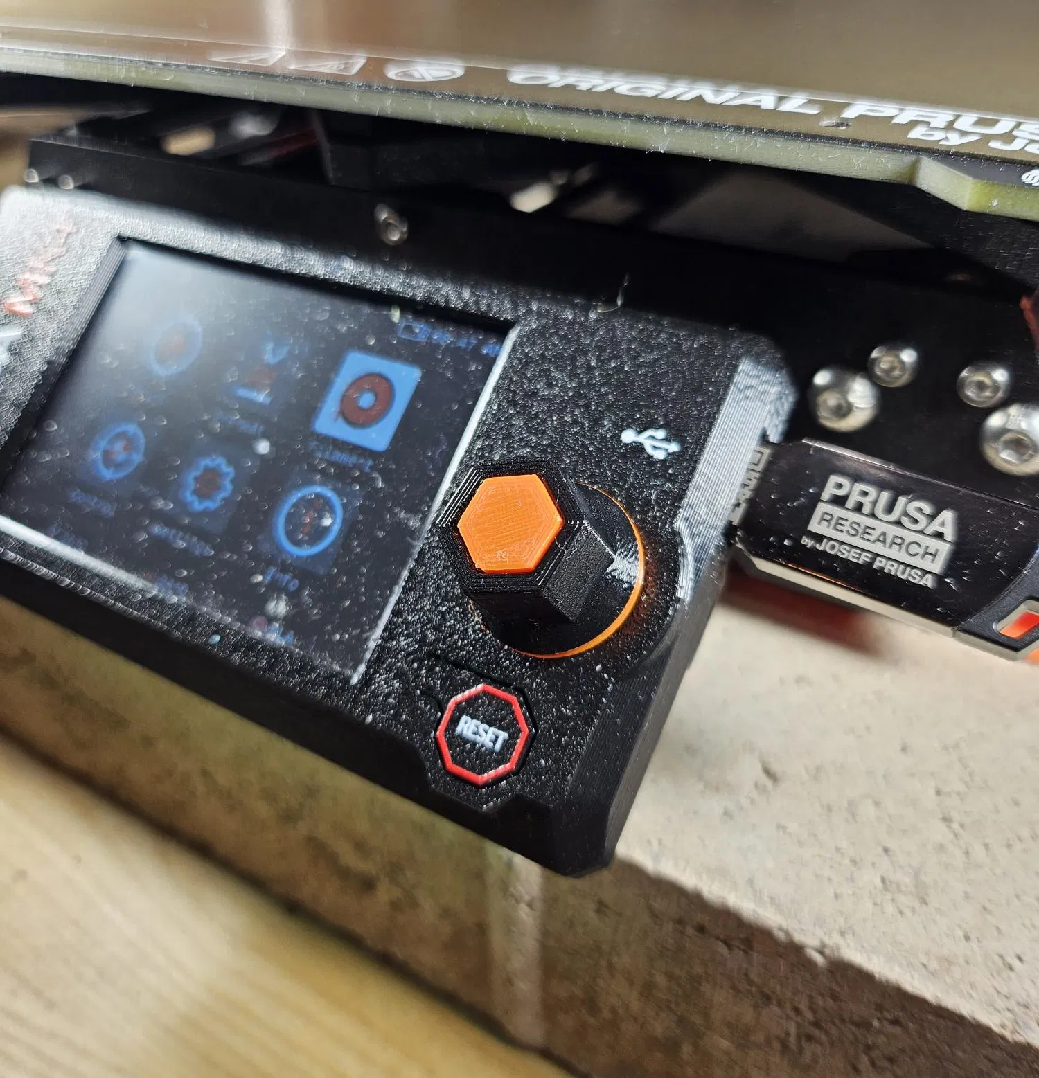 Nút điều khiển dạng lục giác cho máy in Prusa MK4. Có hai phiên bản: một phiên bản đầu đặc và một phiên bản có chèn màu riêng biệt. Tăng thêm vẻ đẹp cho màn hình điều khiển máy in của bạn.