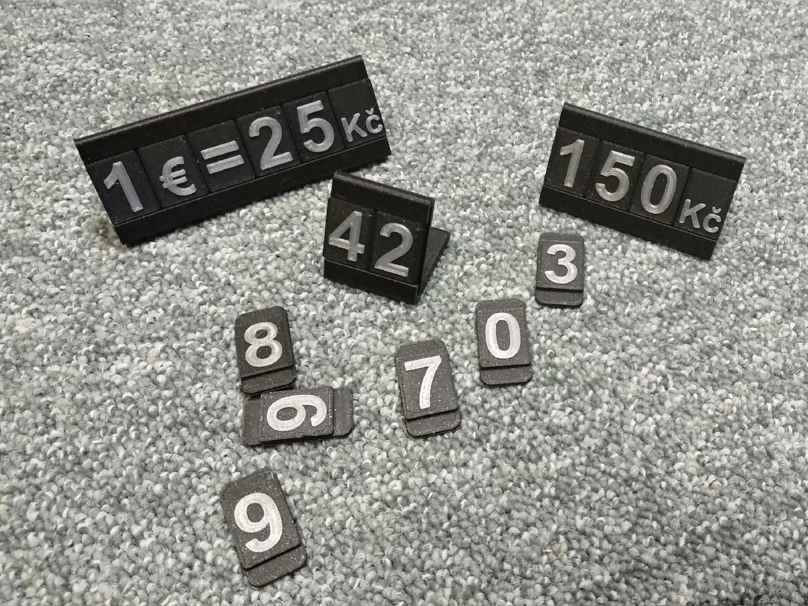 Hệ thống tạo bảng giá và vật dụng dạng module, dễ dàng tùy chỉnh chữ số. Bao gồm các đế đứng, đế phẳng và các khối số/ký hiệu. Tương thích với OSBS. File nguồn OpenSCAD có sẵn.
