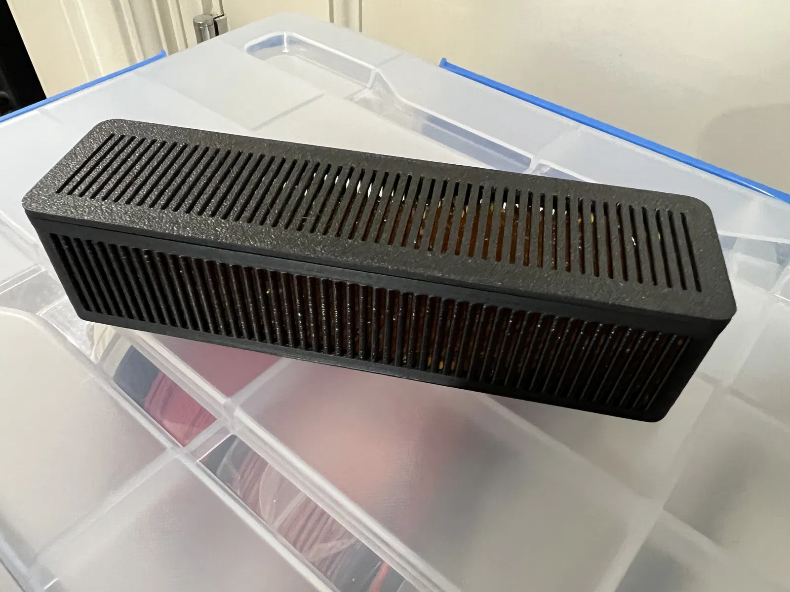 Tui thui cái mẫu gốc lắm mà mấy cái khe hở nó làm bự quá, tới 1.6mm lận, nên mấy cục hút ẩm Dry & Dry nhỏ nhỏ (bị bể) nó chui ra hết trơn. Tui remixed lại làm khe 1mm hết rồi, giờ thì hầu như không còn cục nào lọt ra ngoài nữa.