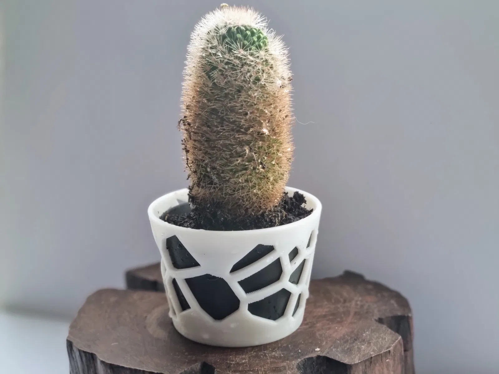Chậu trồng cây xương rồng và hoa nhỏ kiểu Voronoi, có 2 kích cỡ 100mm và 60mm. Chậu có thiết kế thông minh giúp giữ nước ở đáy mà không làm ngập úng rễ, có lỗ thoát nước. Thích hợp cho cây mọng nước, xương rồng và hoa. Hỗ trợ tùy chỉnh kích thước.