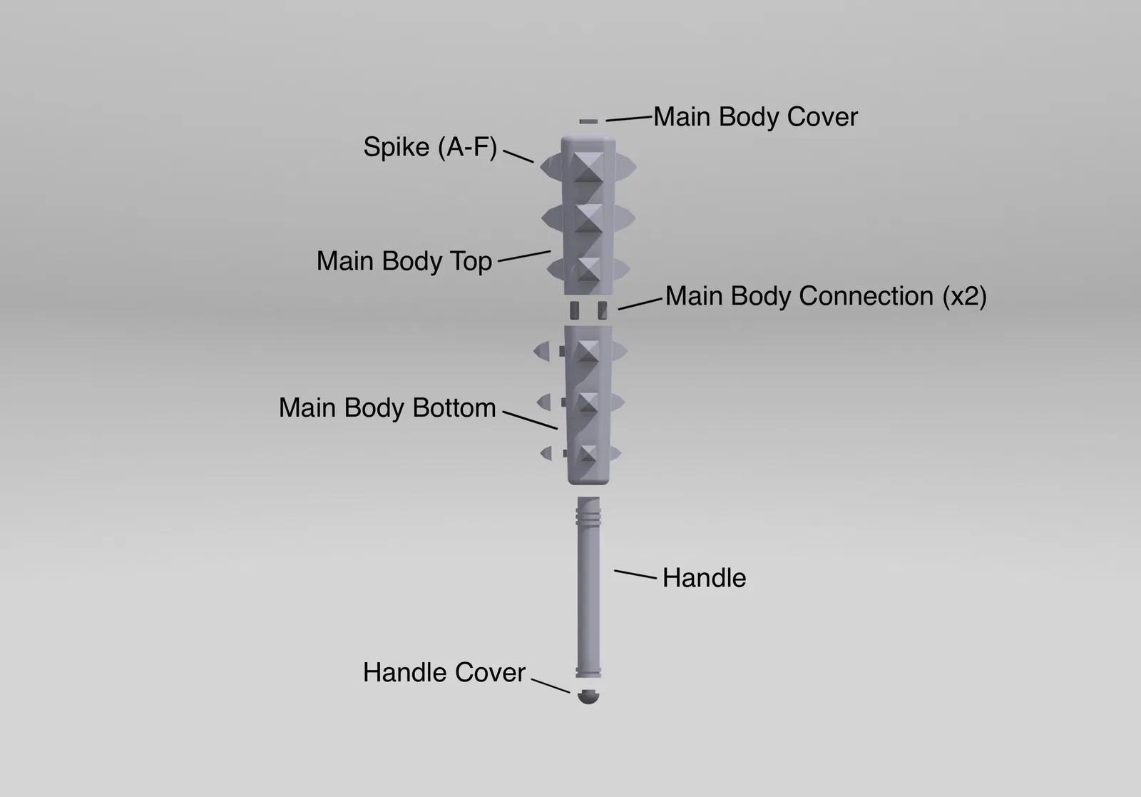 Các bộ phận có thể dán lại với nhau và nếu bạn muốn chắc chắn hơn, bạn có thể luồn một thanh ren qua cây chùy. Các đai ốc có thể được giấu trong các khe hở được che bởi các bộ phận phù hợp.