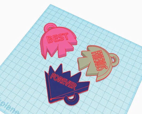 Móc khóa trái tim tình bạn gồm 3 mảnh, có khắc chữ 'Best Friends Forever', là món quà ý nghĩa cho đôi bạn thân.