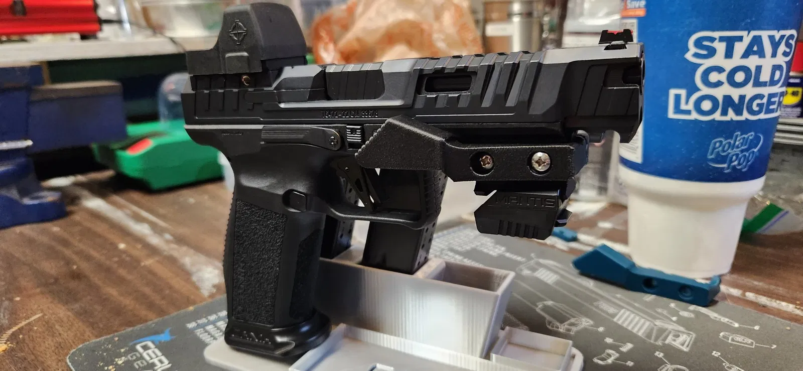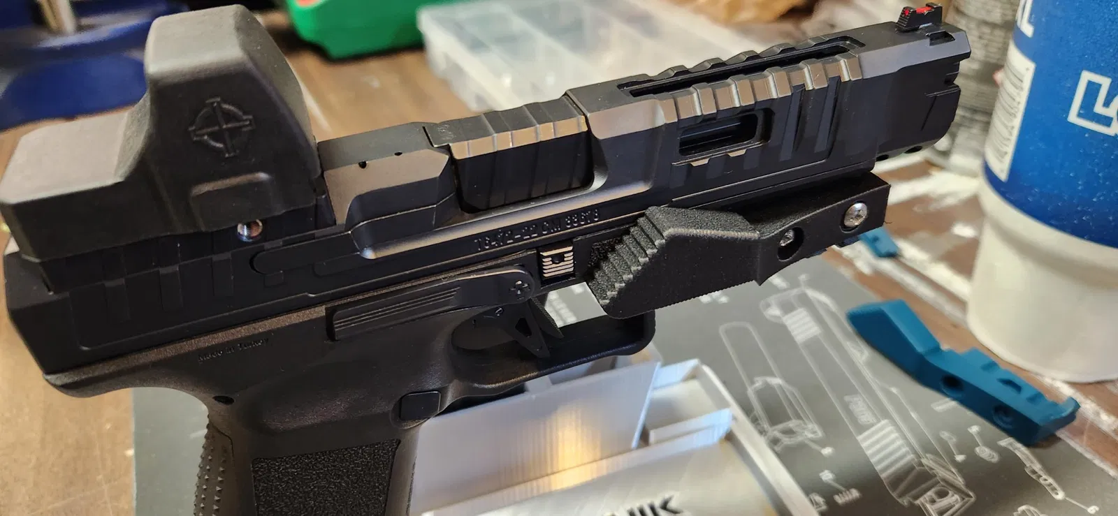 Bàn đạp ga cho Canik Rival, để kiểm soát độ nảy của nòng súng. Gắn vào picatinny bằng 6-24 x 1-1/4 vít. Cũng có một picatinny để gắn bên dưới, tôi đã sử dụng để gắn cảm biến MantisX. Bạn sẽ phải thử nghiệm với hướng và hỗ trợ để có được kết quả tốt nhất. Tôi đã in bằng PLA-CF với 100% độ đầy.