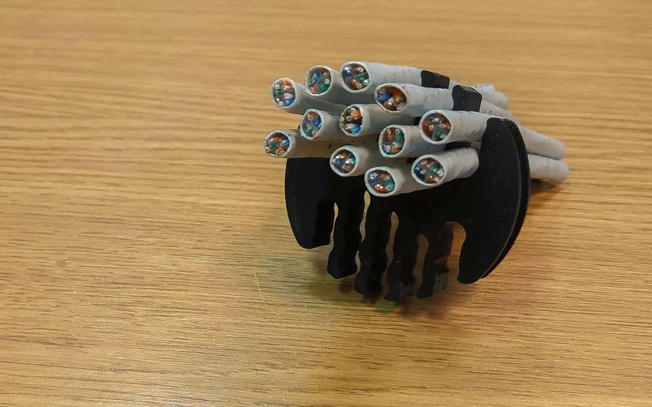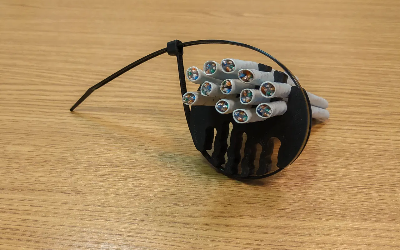Có thể dùng dây rút nhựa - bản rộng tối đa 5mm. Thiết kế cho dây cáp đường kính 6mm trong trường hợp của mình là ETH cat6.