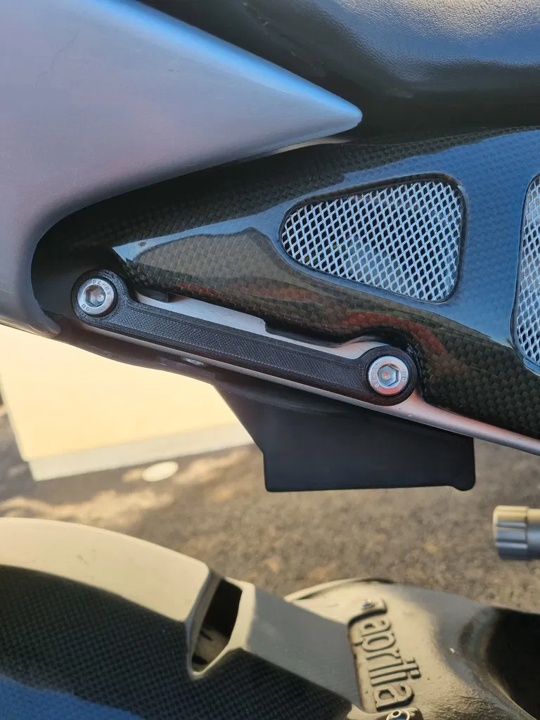 Cái ốp nhỏ này dành cho anh em đi Tuono và RSV Gen1 mà không gắn baga chân dắt khách. Giúp xe nhìn gọn gàng hơn. Cài đặt in thì không cần Rafts, Supports, độ phân giải 0.2, Infill 20% với filament GIANTARM PETG Đen.