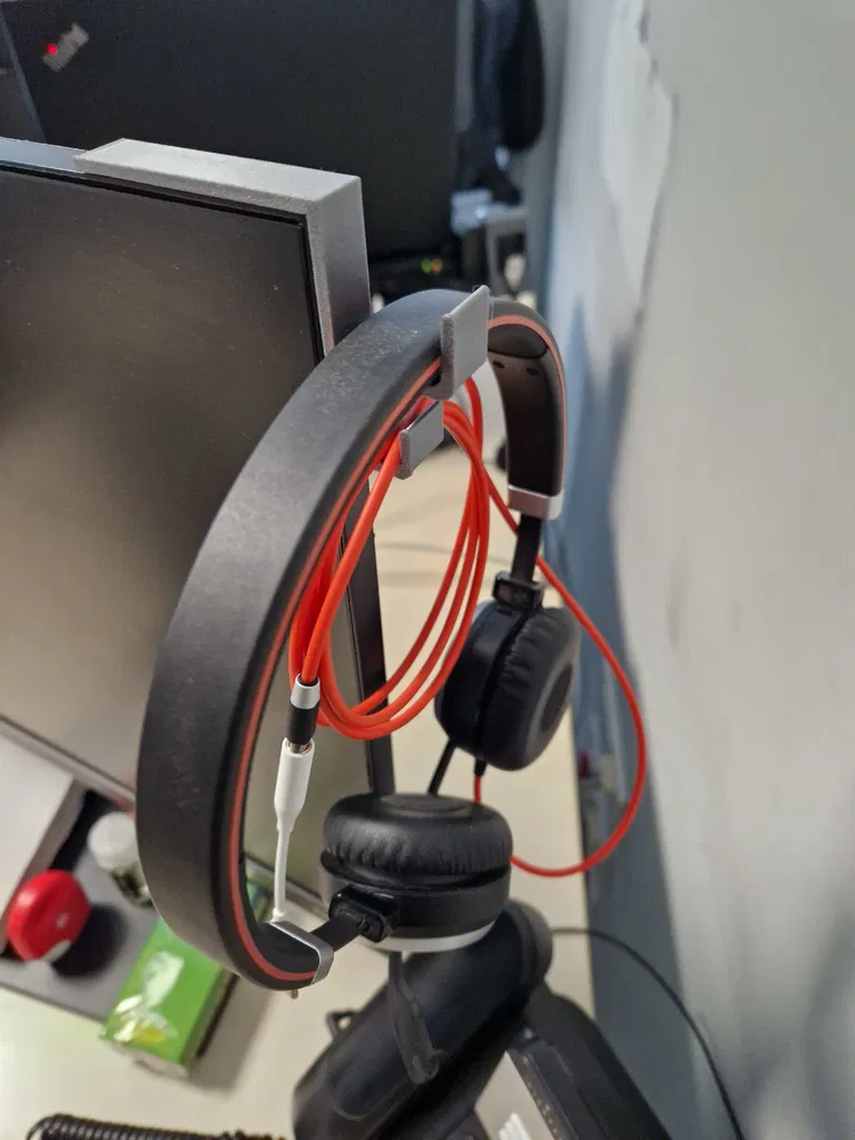 Tui làm cái kệ tai nghe gắn màn hình máy tính này, có chỗ móc dây tai nghe luôn, cố định bằng băng keo hai mặt nha.