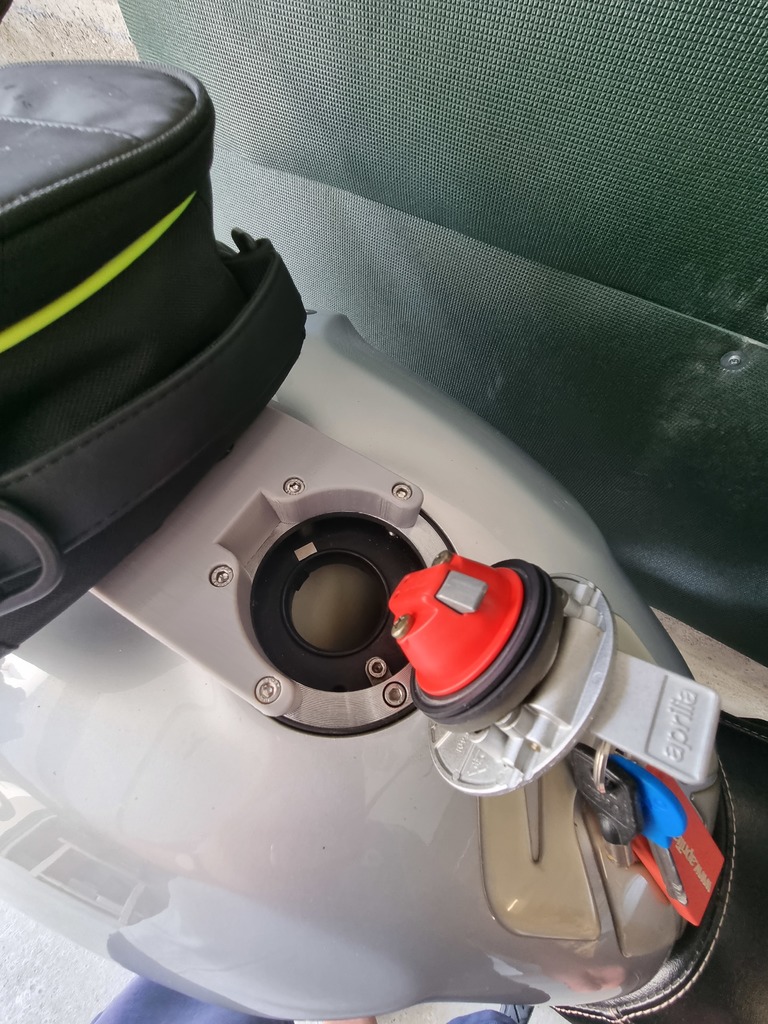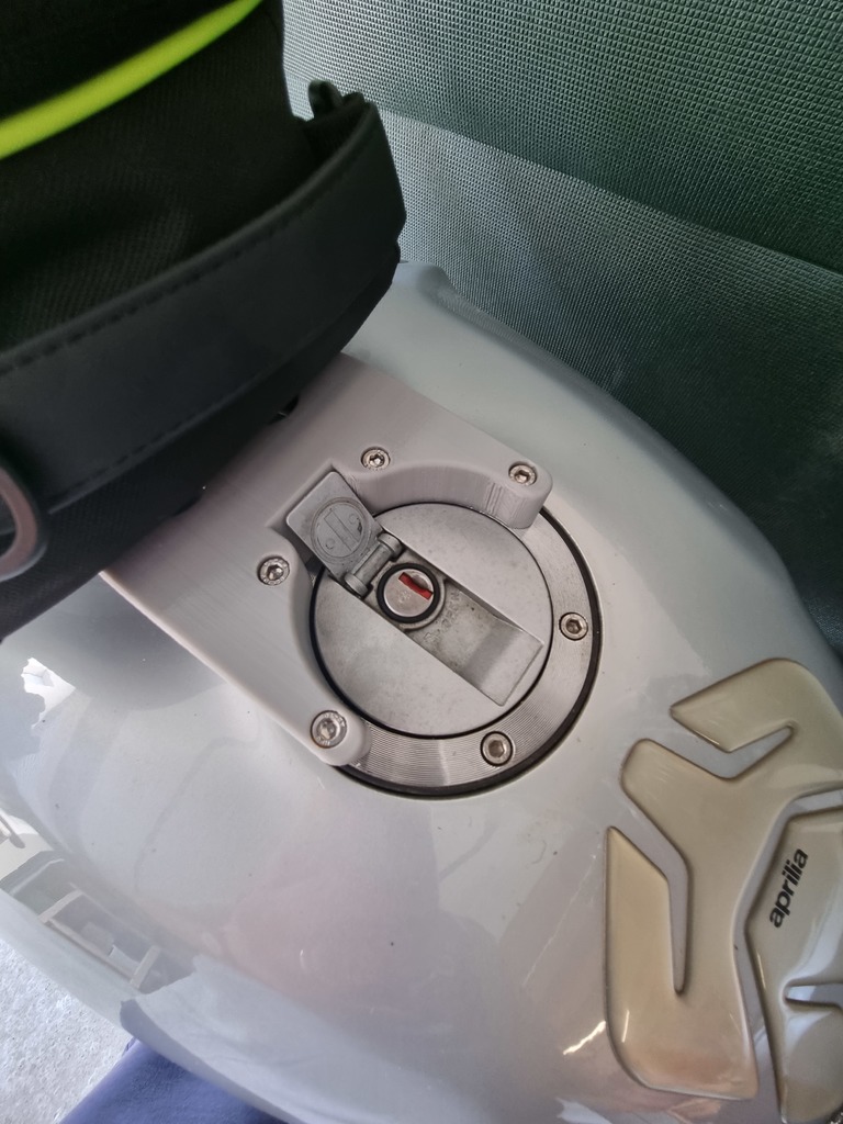 Chỉnh sửa lại từ Thingiverse, tui có mấy cái túi Givi, nên tui tạo ra cái adapter để dịch cái Givi Tanklock lên bình xăng của Aprilia Tuono (hoặc RSV). Nếu anh em chưa có, tui có làm cái adapter để gắn cái này luôn nè.