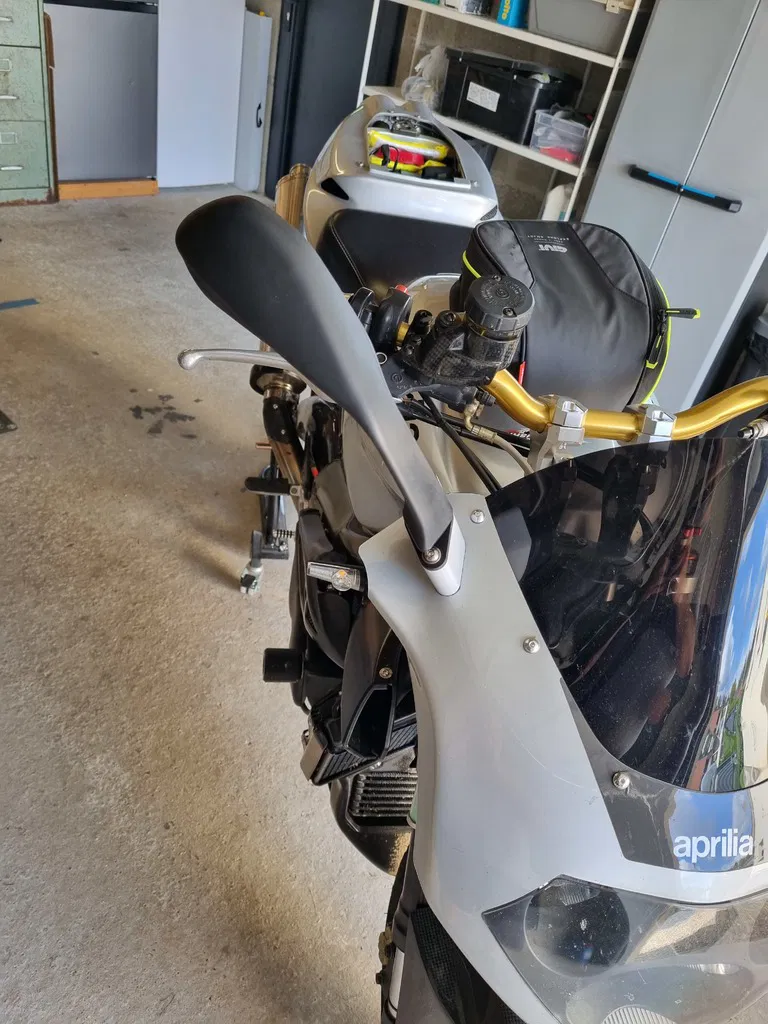 Cục canh chỉnh gương chiếu hậu cho Aprilia RSV 1000, giúp nâng cao gương lên (2, 4, 6, hoặc 8 cm) để nhìn rõ hơn, tương thích với cả RSV và Tuono. Dùng để bảo vệ dàn áo, cục canh này được dán thêm mút dày 1mm ở đế.