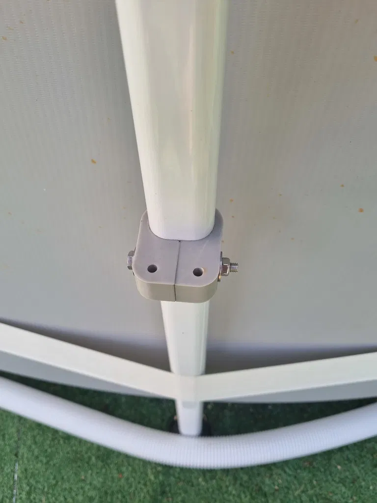 Chiếc móc này được tạo ra để giữ cho bạt hồ bơi Intex được căng, giúp nước mưa không bị đọng lại. Bạn cần một con ốc và đai ốc 6x60mm bằng thép không gỉ. Phù hợp cho hồ bơi Intex Prism Frame tròn.