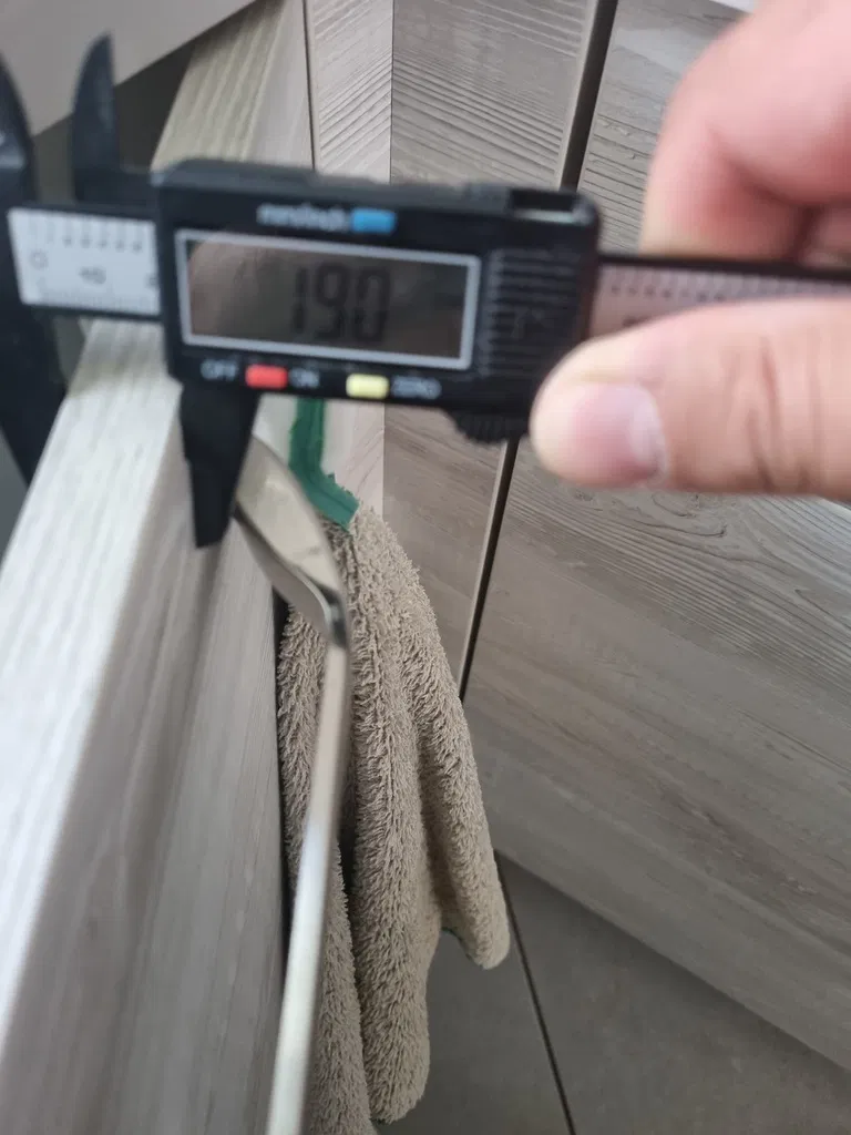 Móc treo này làm bằng PLA hoặc PETG, gắn lên cửa tủ bếp Ixina 19mm, để treo khăn ăn hoặc khăn lau bếp. Infill 100%, độ phân giải 0.2.