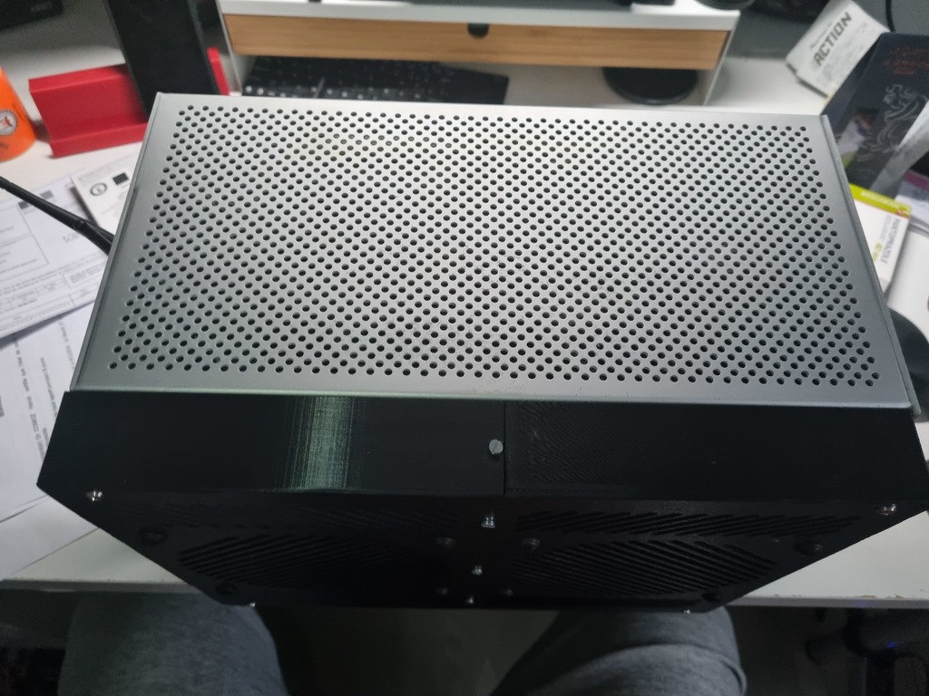 Đây là tấm che cho vỏ case Metalfish S5, cho phép gắn thêm 2 quạt 140mm. Bạn cần 5 ốc 3x10mm để lắp 2 bộ phận lại với nhau và 4 ốc 3x4.5mm để gắn vào case. In bằng PLA với độ phân giải 0.2 và infill 20%.