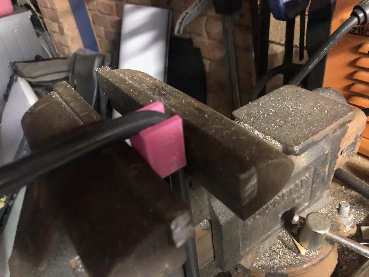 Giữ chặt trong máy kẹp vise, đảm bảo phần ống thẳng 10mm nằm hoàn toàn trong hàm kẹp như hình và tiến hành uốn. Đã thử nghiệm với ống thép thành dày và ống nhôm.