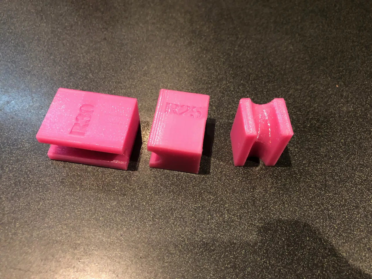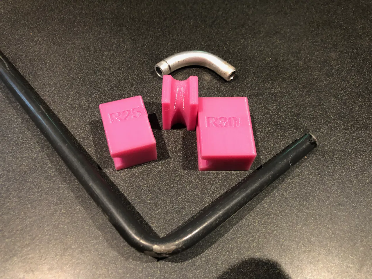 Dụng cụ uốn ống đơn giản cho các khúc cua bán kính hẹp lên đến 90 độ. In với độ đầy cao hoặc 100%. Bán kính được đánh dấu trên các khối.