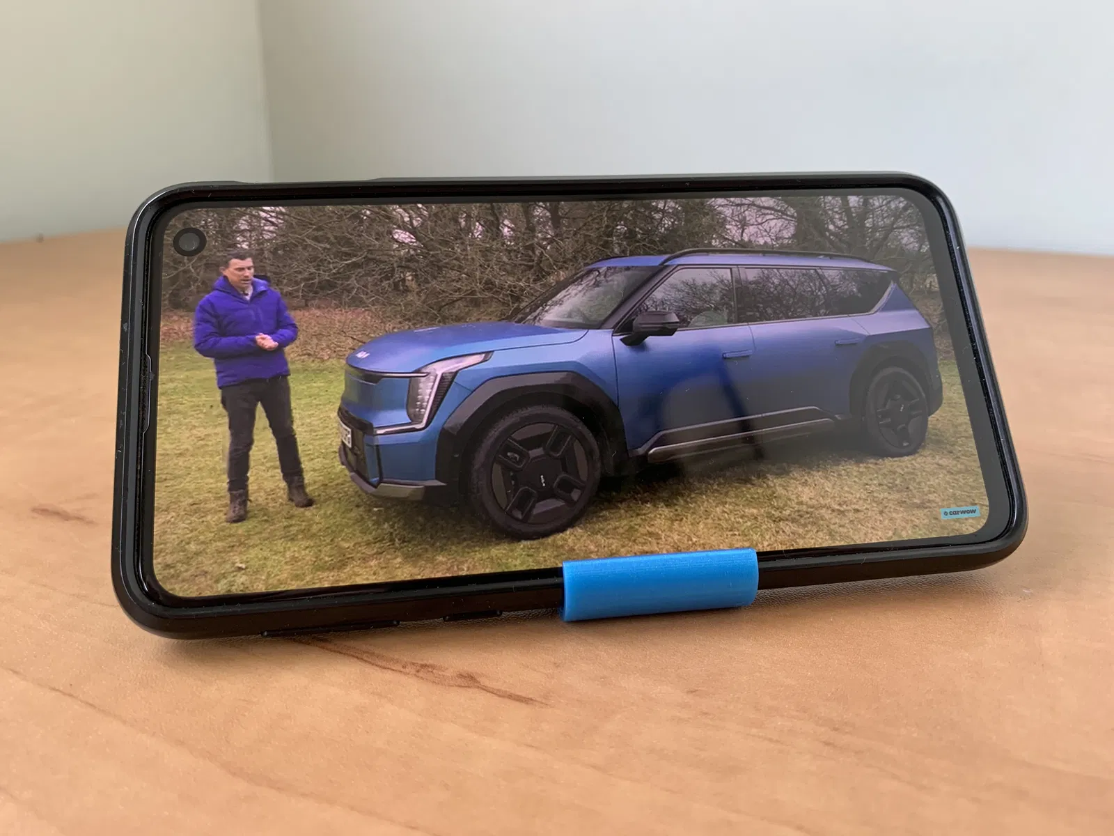 Giá đỡ / đế giữ điện thoại thông minh cỡ nhỏ, dễ in và mang theo. Thiết kế mới năm 2024 với các cạnh cao hơn và bo tròn hơn, giữ điện thoại ở chế độ nằm ngang.