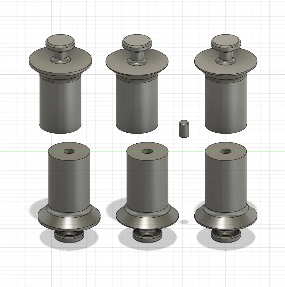 Cái đế giữ cuộn dây ban đầu thì xịn sò đó, nhưng mà mấy cái chốt để giữ bạc đạn thì không chắc chắn lắm, với lại cái phần đỡ ở trên dễ bị gãy lúc in nữa. Mình dựa trên kích thước gốc và thiết kế cái này thành hai phần cho dễ in hơn, làm cho nó đặc luôn để mấy cái chỗ đỡ bên trong không bị hư. Có cái chốt để dễ dàng dán lại. Một cái thì xoay tự do, một cái xoay ít hơn và một cái thì không xoay luôn.