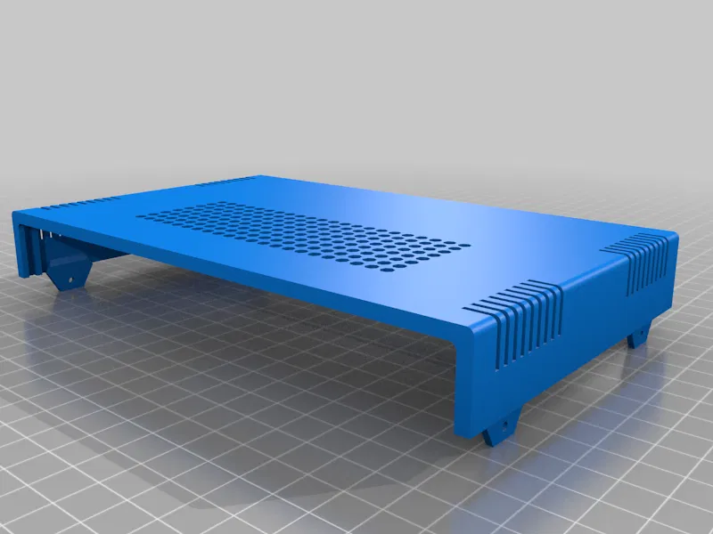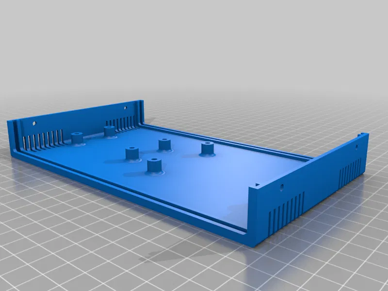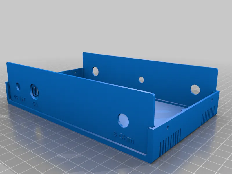 Tui lấy bản remix "Customizable Box" của jbebel rồi thêm khả năng chứa thêm một bo mạch PCB thứ hai. Tui cũng thêm một số khe thông gió bổ sung ở mặt trên. Trong bản dựng cuối cùng, tui cũng gắn thêm một quạt nhỏ 30x30x10 24V trực tiếp vào tản nhiệt của ampli để giảm nhiệt độ một chút.