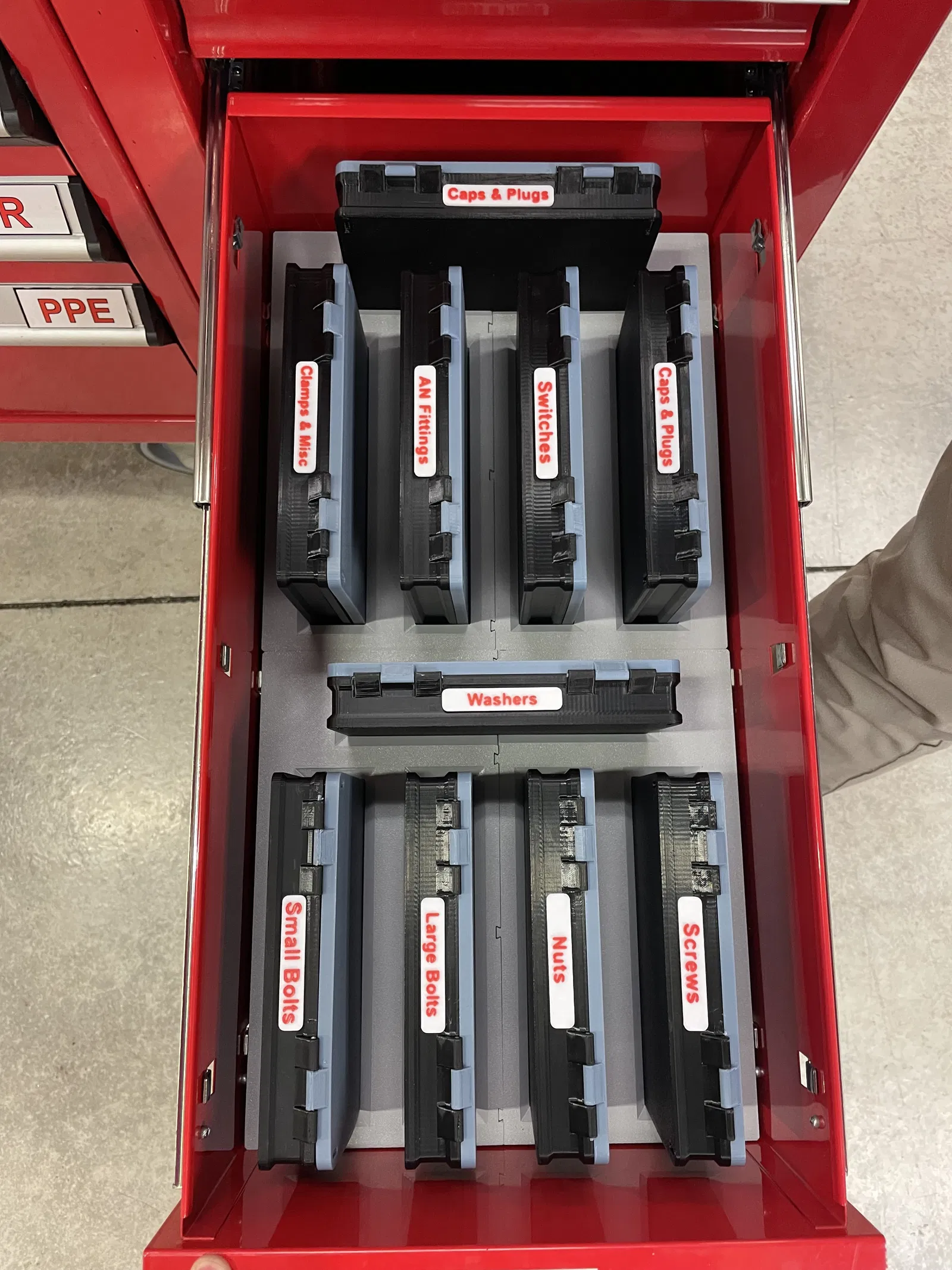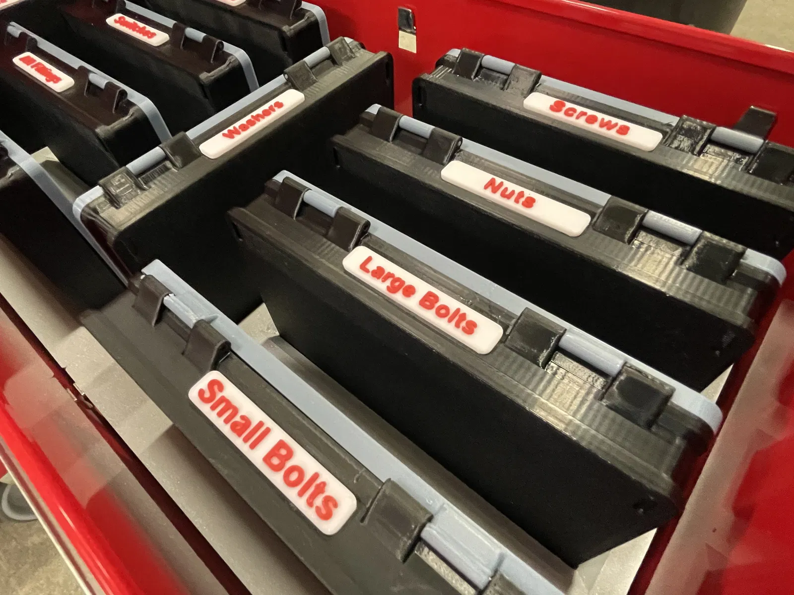 Mấy cái nhãn này là cho cái hộp đựng đồ của bạn spansammler. Nhưng mà cũng có thể dùng cho nhiều thứ khác nữa! Tôi có làm thêm một cái khay để đựng mấy cái hộp này đứng thẳng để dễ lấy trong ngăn kéo tủ đồ nghề, nên tôi muốn có mấy cái nhãn để biết bên trong mỗi hộp đựng gì. Gắn nhãn vào hộp bằng keo siêu dính nha. Sử dụng công cụ tô màu trong slicer để in chữ màu khác với đế cho nó nổi bật hơn. Rõ ràng là, cách này hiệu quả nhất nếu bạn có Bambu AMS hoặc hệ thống đa vật liệu khác, nhưng bạn cũng có thể làm bằng cách dừng in ở độ cao lớp phù hợp và đổi sợi nhựa. Xem các video hướng dẫn trên YouTube nếu bạn thuộc trường hợp này.