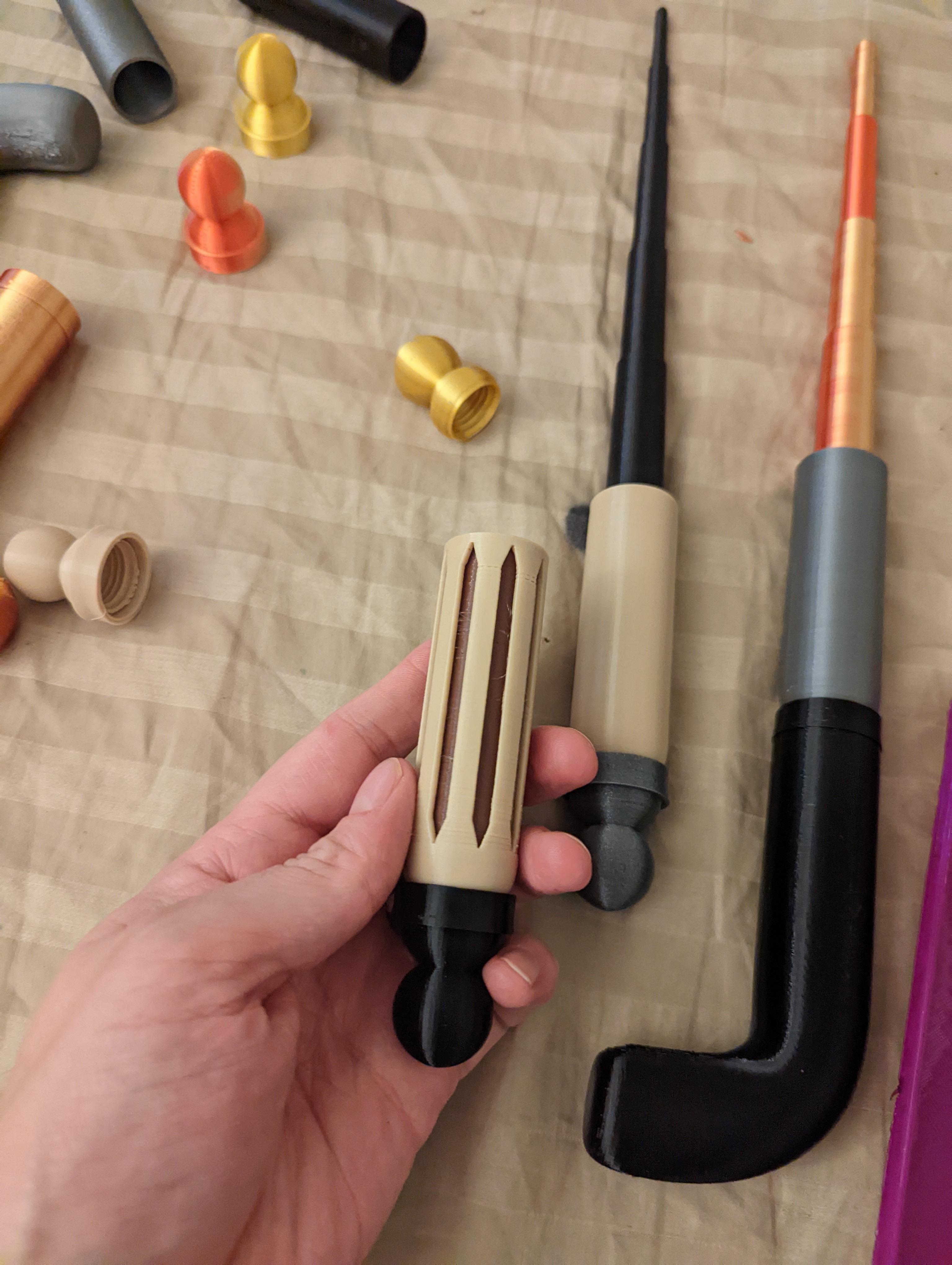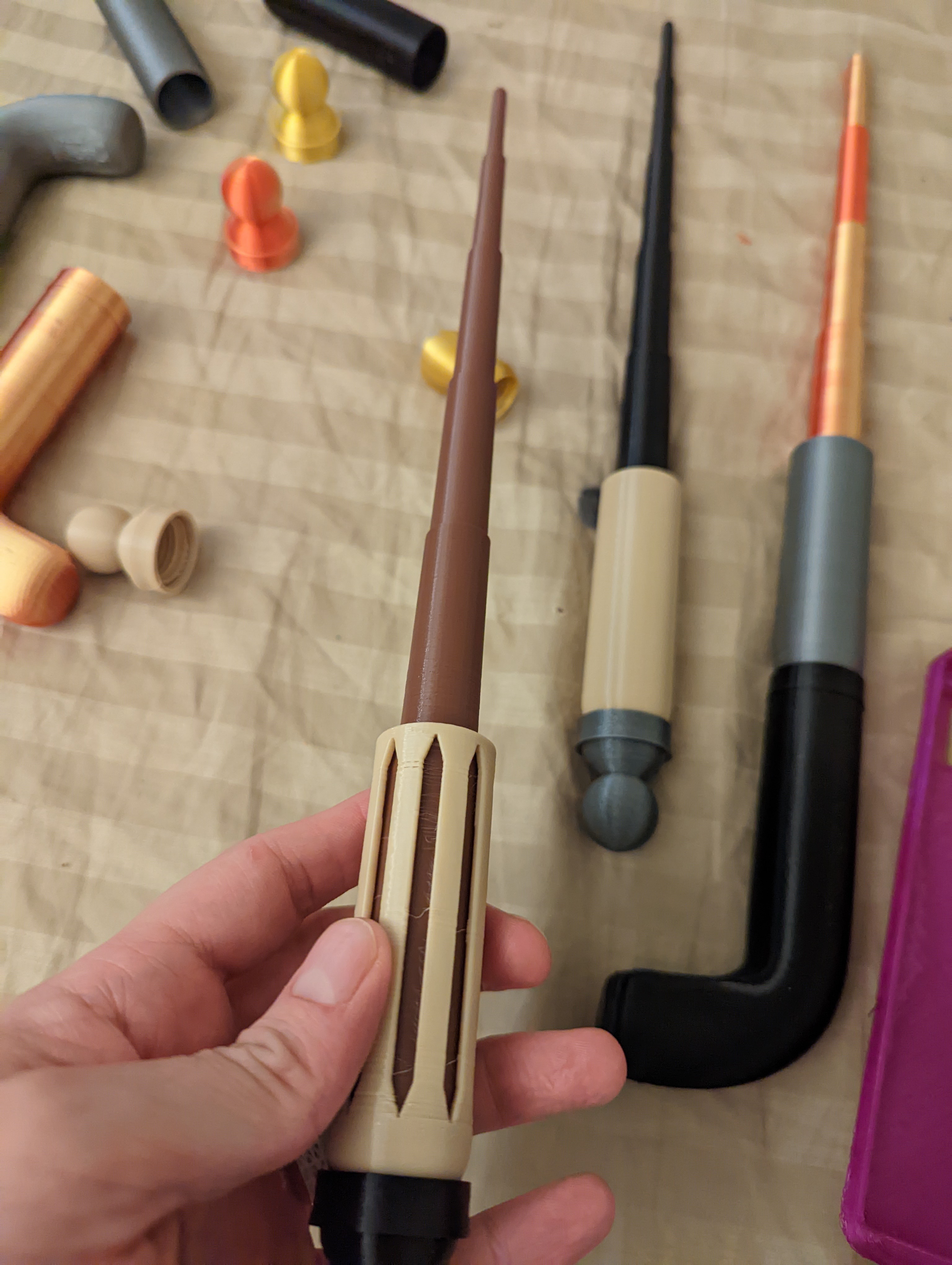 Đây là phiên bản cũ của cây đũa phép tùy chỉnh có thể gập lại. Tuy hoạt động tốt, nhưng chủ sở hữu đã có kế hoạch tốt hơn và đang phát triển một phiên bản mới. Tệp Blender cũng được cung cấp kèm theo. Khuyến khích in ở độ cao lớp 0.2mm để đảm bảo chi tiết.