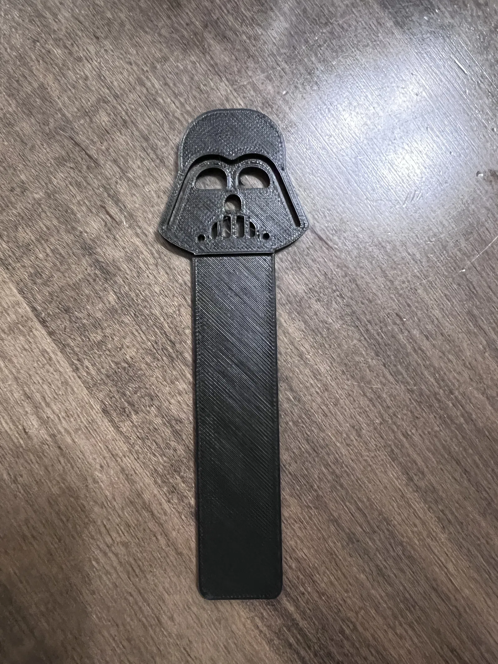 Bookmark Darth Vader với phần lưỡi đặc và khuôn mặt nhô lên để đặt trên trang sách. Bản làm lại của bookmark Darth Vader có phần lưỡi đẩy như kẹp giấy, nhưng phiên bản này có lưỡi/đế đặc, cứng cáp hơn, bền hơn cho trẻ nhỏ.