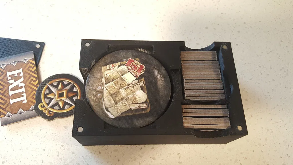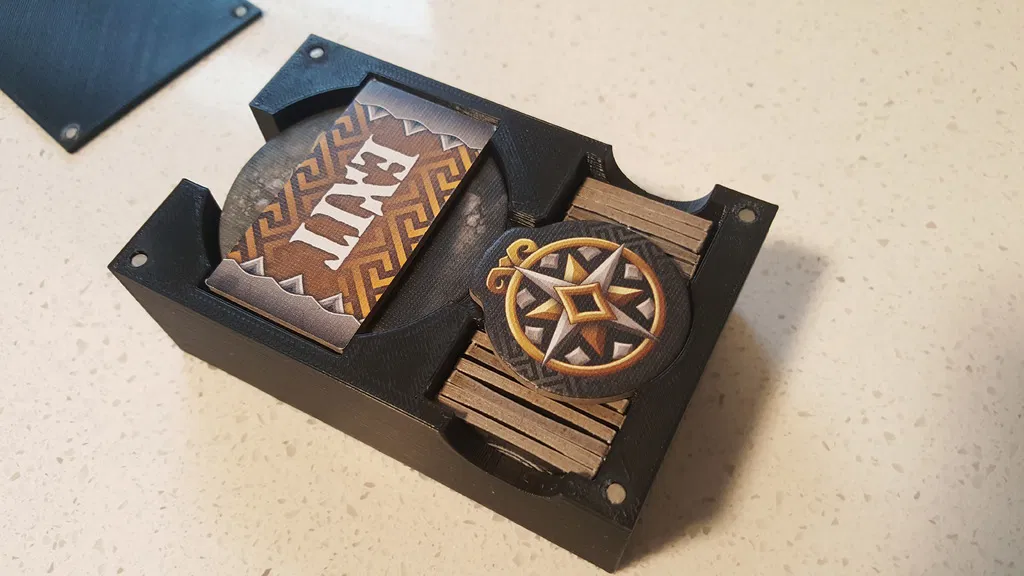 Hộp đựng token vật phẩm, cột, cửa, bắt đầu/kết thúc cho game Massive Darkness. Nắp có lỗ nam châm. Token được giữ chặt bằng token khác. In với Prusa i3 MK2S, không cần supports hay rafts, độ phân giải .20mm, infill 20%.