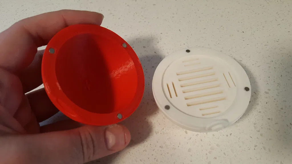 Mô hình này đã được phóng to để thẻ SD tiêu chuẩn vừa với các khe và được sửa đổi để bao gồm các lỗ nam châm cho nam châm tròn 3mm x 1mm để nắp đậy được giữ chặt.