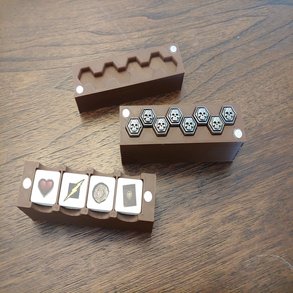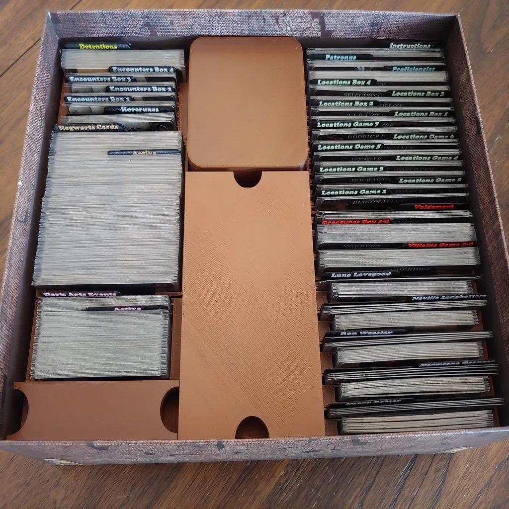 Cập nhật 1/12/21: Đây là insert HOÀN CHỈNH cho tất cả lá bài và token của Harry Potter Hogwarts Battle, kể cả bản mở rộng Monster Box of Monsters. Thiết lập này chứa mọi thứ, giúp xếp gọn gàng và hạn chế nâng nắp hộp. Sử dụng nam châm 6mm x 2mm cho các insert token.