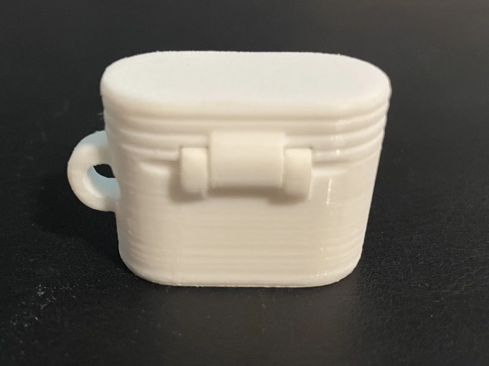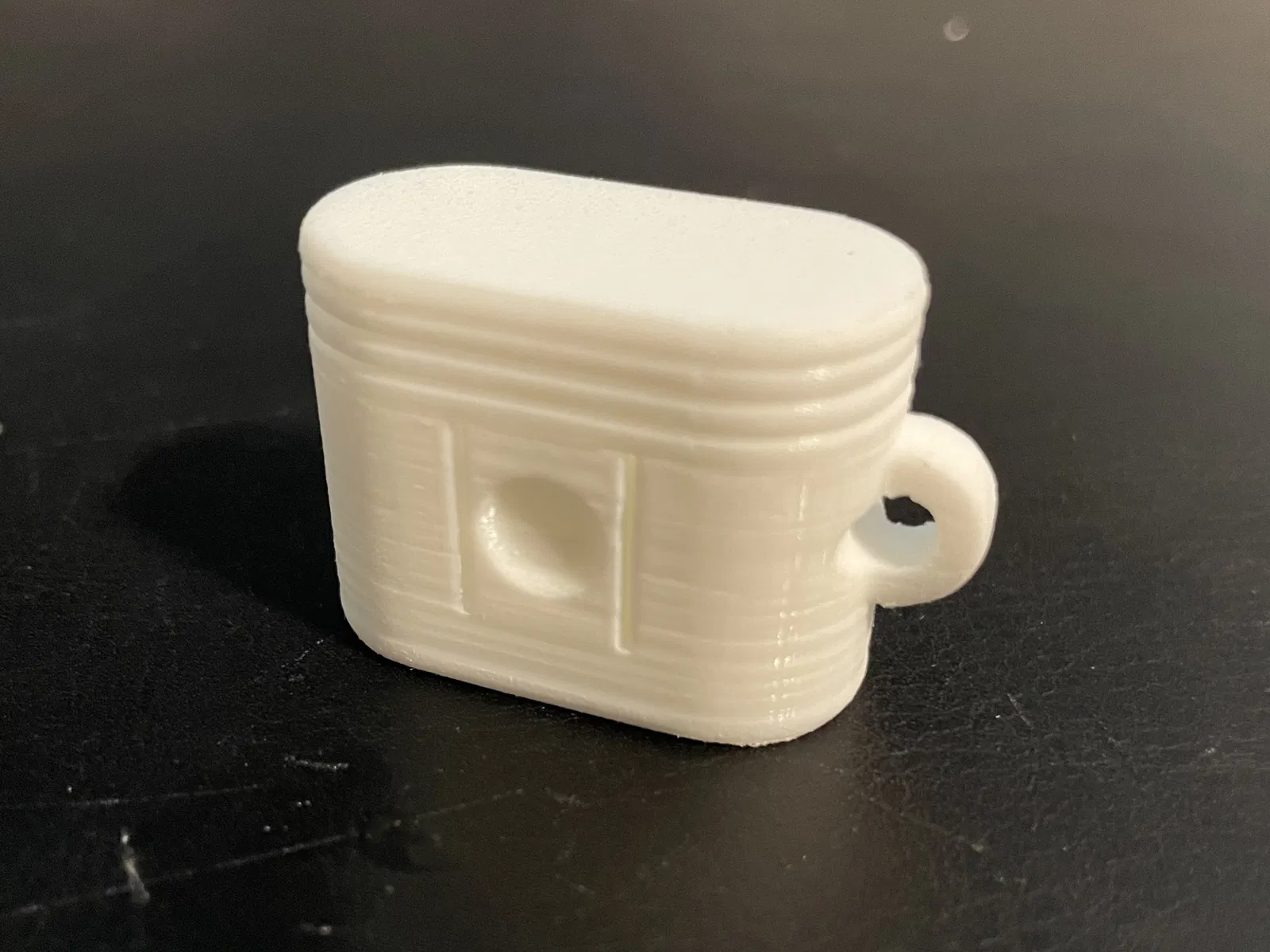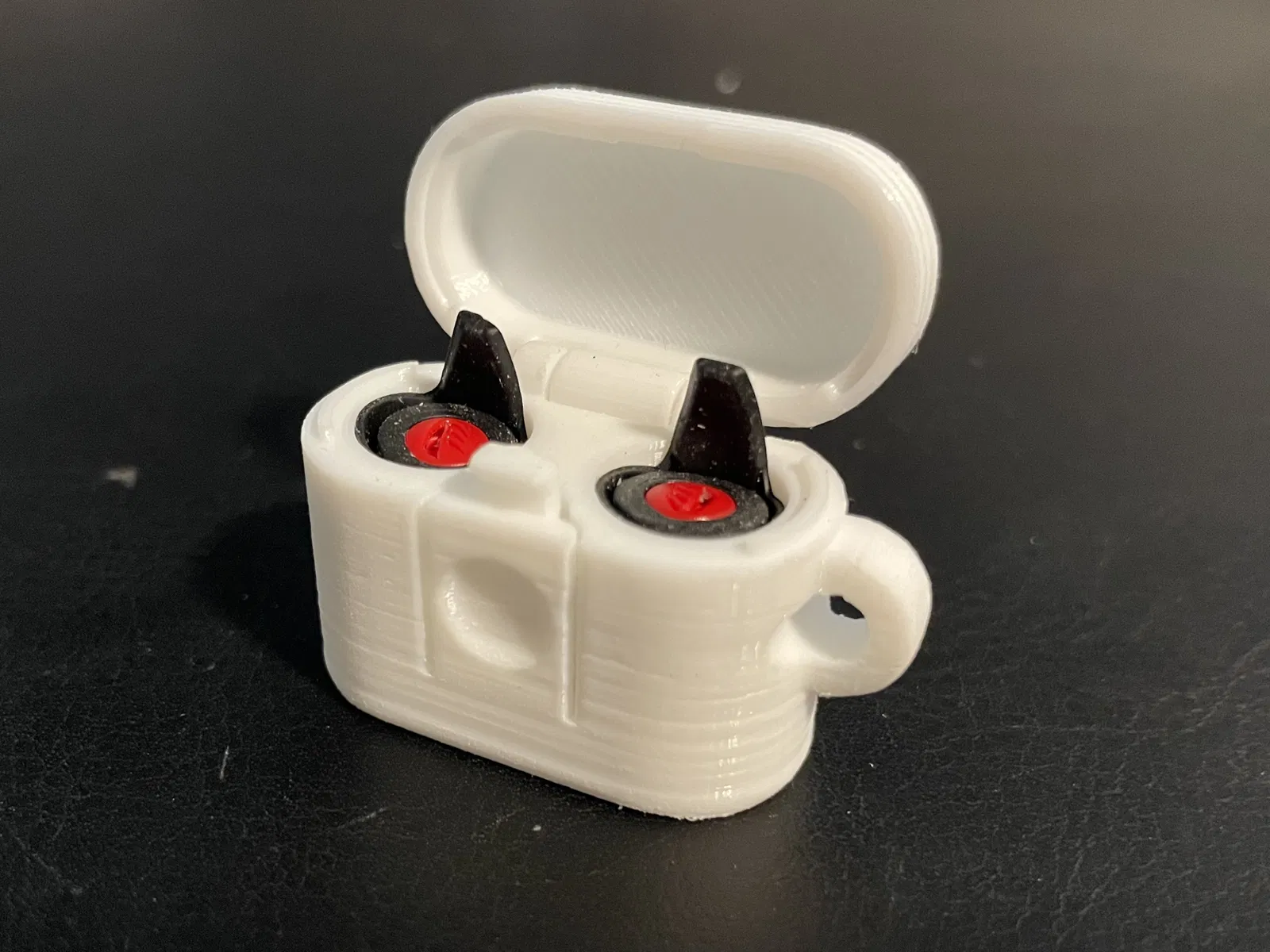 Hộp đựng nút bịt tai được chỉnh sửa, có lỗ chốt bản lề đủ nhỏ để dùng kẹp giấy, và có vòng để treo vào móc khóa. Có thể cần hỗ trợ cho phần vòng móc khóa.