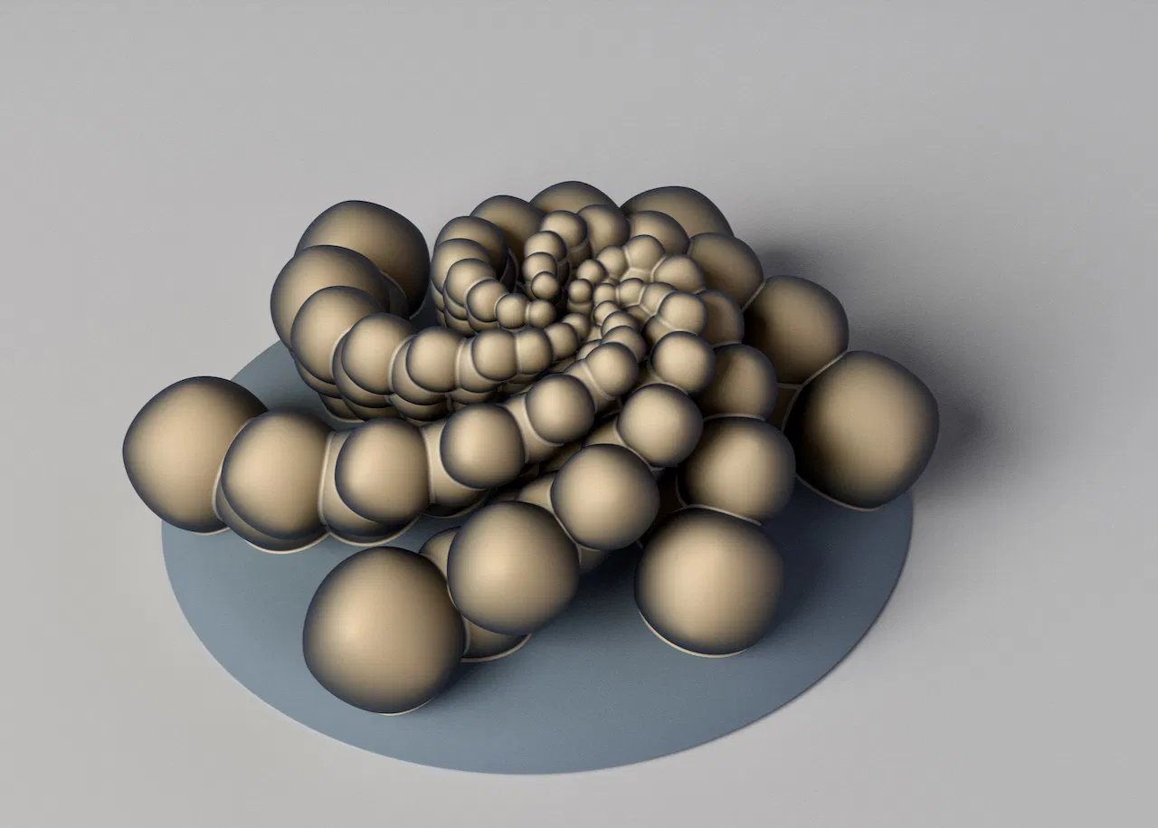 Một tác phẩm điêu khắc về một cấu trúc hữu cơ từ thiên nhiên có hình dạng xoắn ốc.