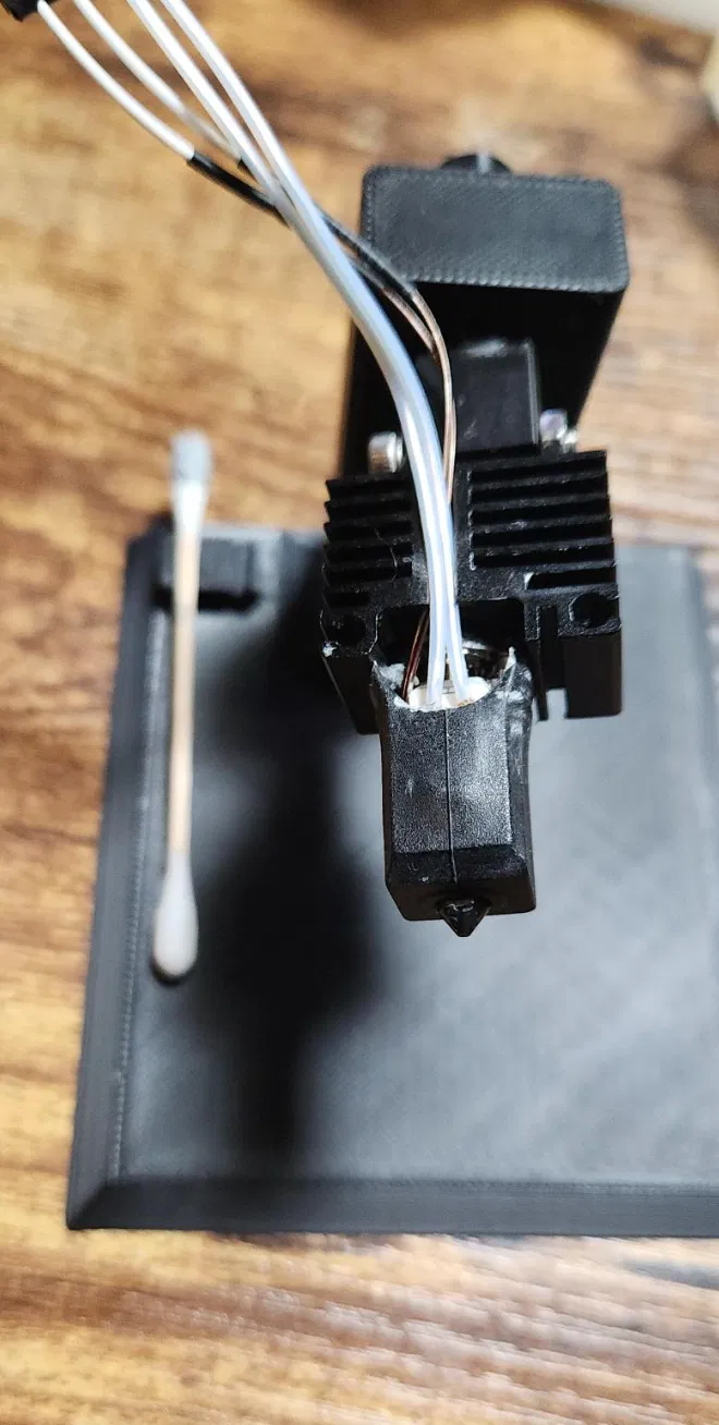 In 10-15 minutes, you can create a handy tool to help you work on your Bambu Lab X1 or P1 series hotends. This station also includes a holder for Q-tips, perfect for applying thermal paste when needed.