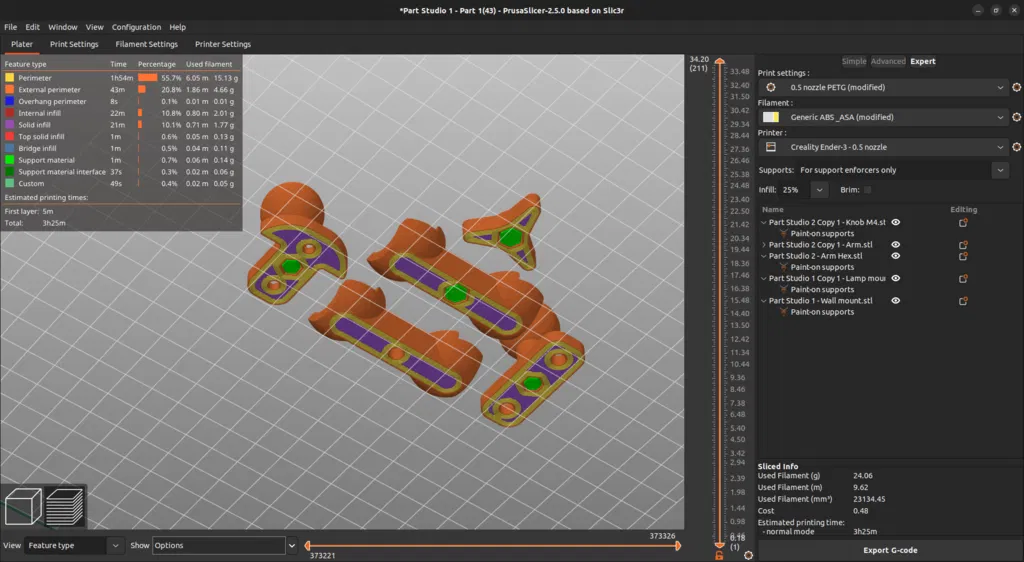 1x M4x30mm + 1x đai ốc M4 (nên dùng loại tự khóa) + 1x vòng đệm M4, cho các cánh tay và núm vặn.