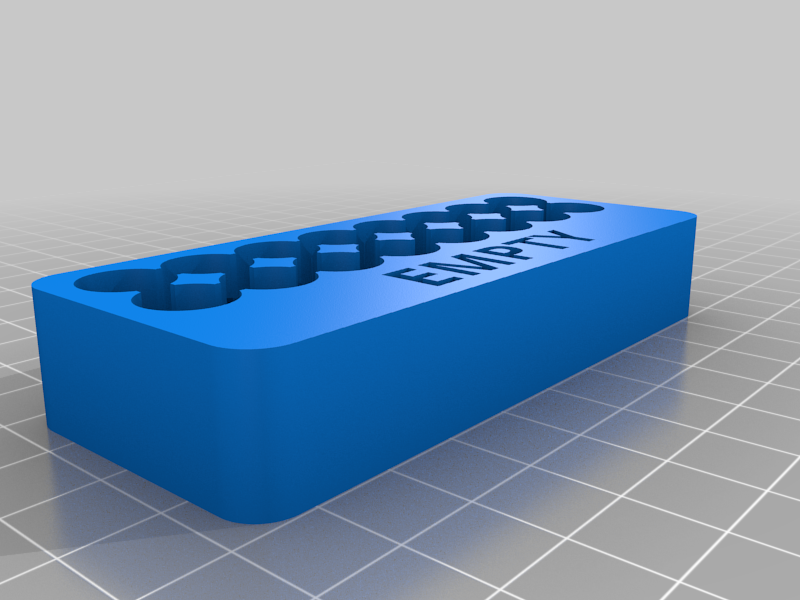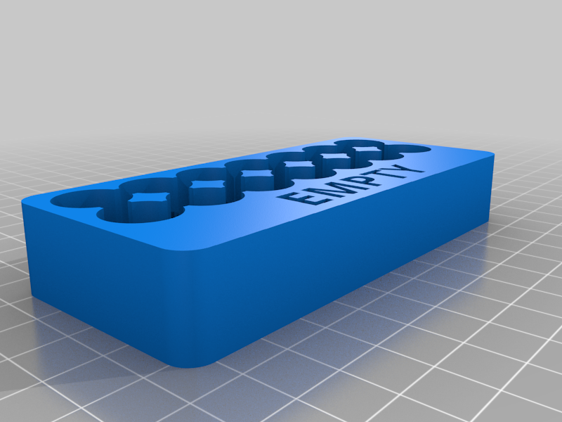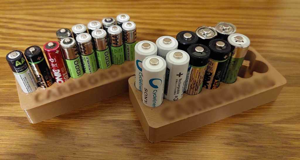 Giá đỡ pin có ký hiệu trạng thái sạc, dùng để chứa 14 pin AA và 16 pin AAA. Phù hợp cho cả pin dung lượng cao, loại dày. Các file STL được đánh dấu SẠC ĐẦY (CHARGED) và HẾT PIN (EMPTY) cho dễ nhận biết.