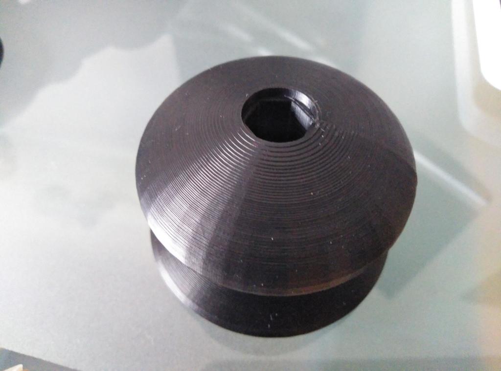Cái núm trên hình tui in bằng nhựa ASA, dùng chiều cao lớp thích ứng từ 0.14 đến 0.22mm. Tui xài mấy lần rồi mà vẫn còn ngon. Dùng PETG cũng được, hoặc PLA ủ nhiệt cũng ok.