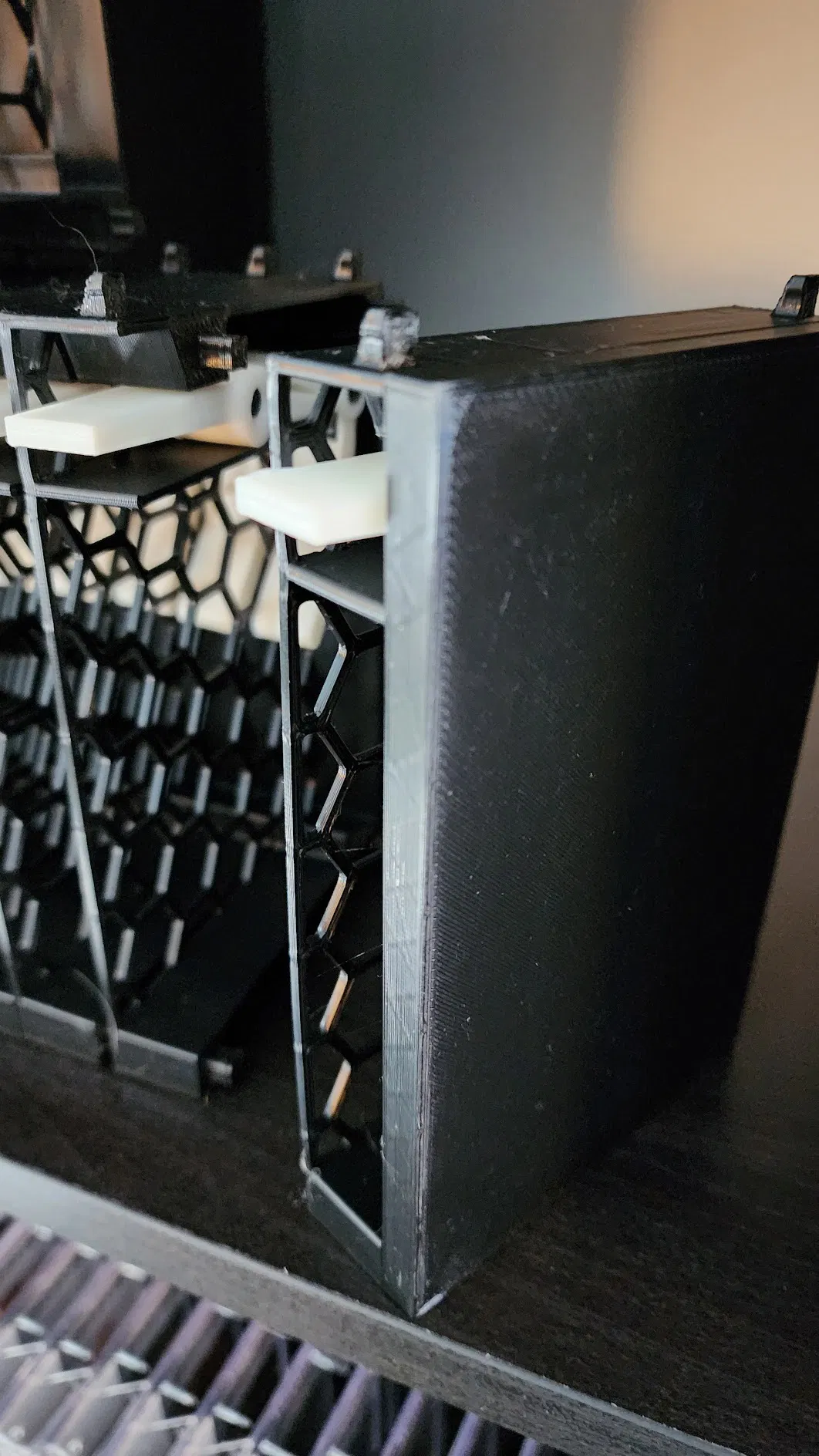 Đây là bản sửa lỗi cho file cassete_holder_right_wall.stl trong mô hình gốc mà tôi làm lại. Các chốt trên cassete_holder.stl và cassete_holder_stack.stl rộng 5mm, nhưng các lỗ trên file right_wall.stl gốc chỉ rộng 4.5mm. Do đó, các chốt trên file thân sẽ không khớp vào các lỗ trên file tường. Bản sửa lỗi này làm rộng các lỗ thành 6mm, cung cấp nửa milimet cho cả bốn phía. Khi in file này với đầu phun 6mm, tôi thấy rằng nó vừa khít và tường sẽ không bị tuột ra khỏi thân.