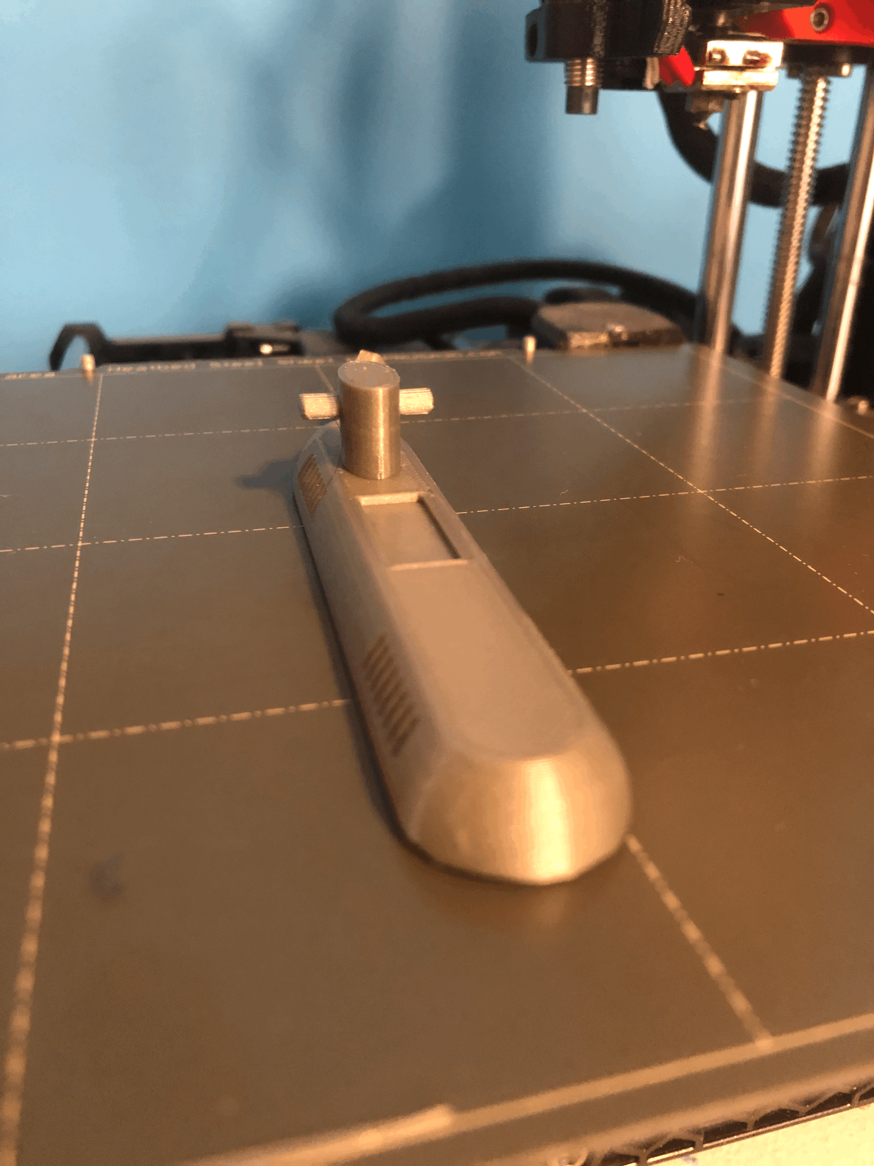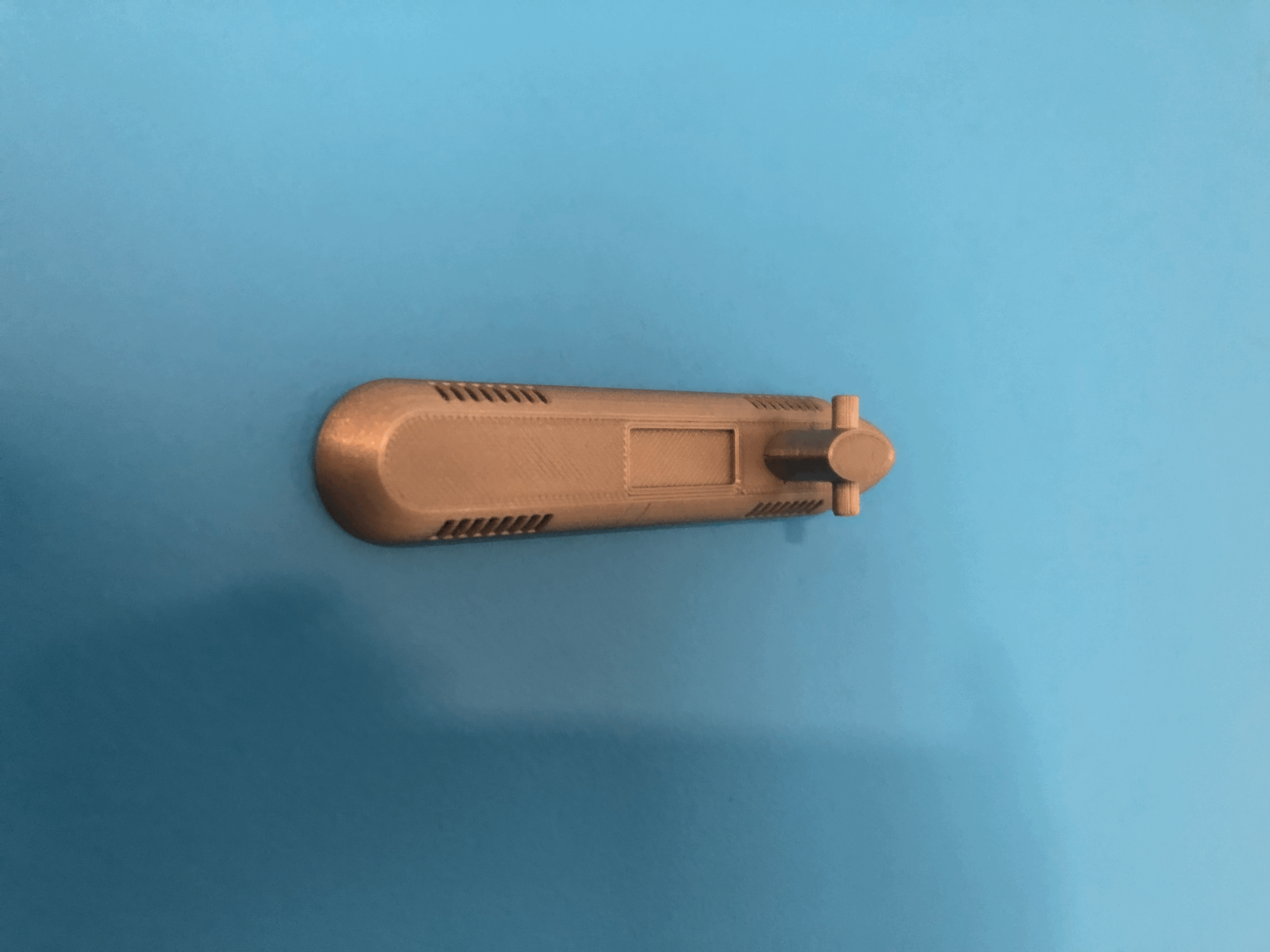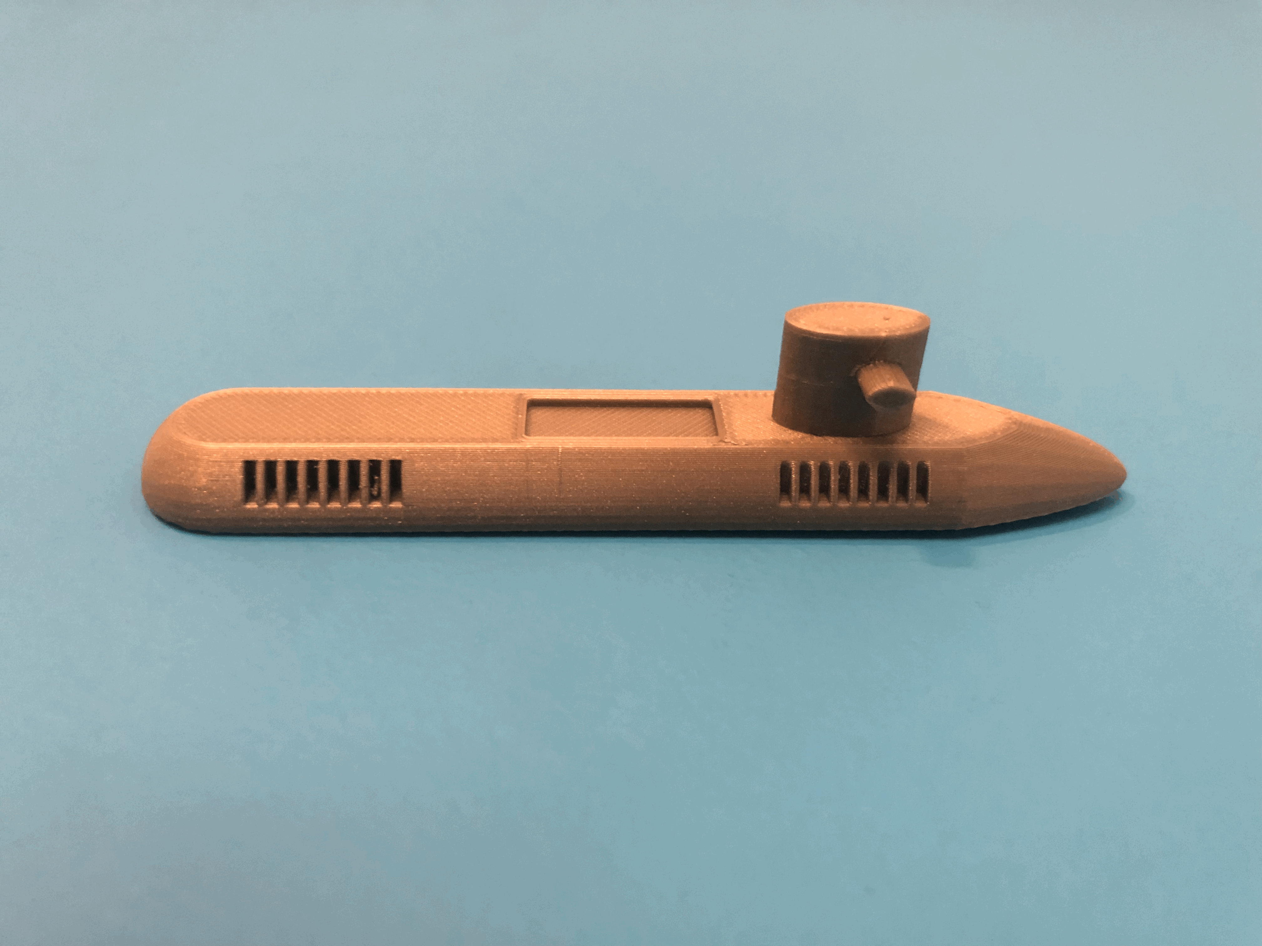 Đây là thân tàu ngầm dài 110mm x 20mm x 32mm, phần đáy được cắt bỏ và một cánh fin phía sau dài 8.4mm x 6.87mm x 11mm. Nếu bạn có bức tường màu xanh, bạn có thể dán nó lên và thế là có một đại dương.