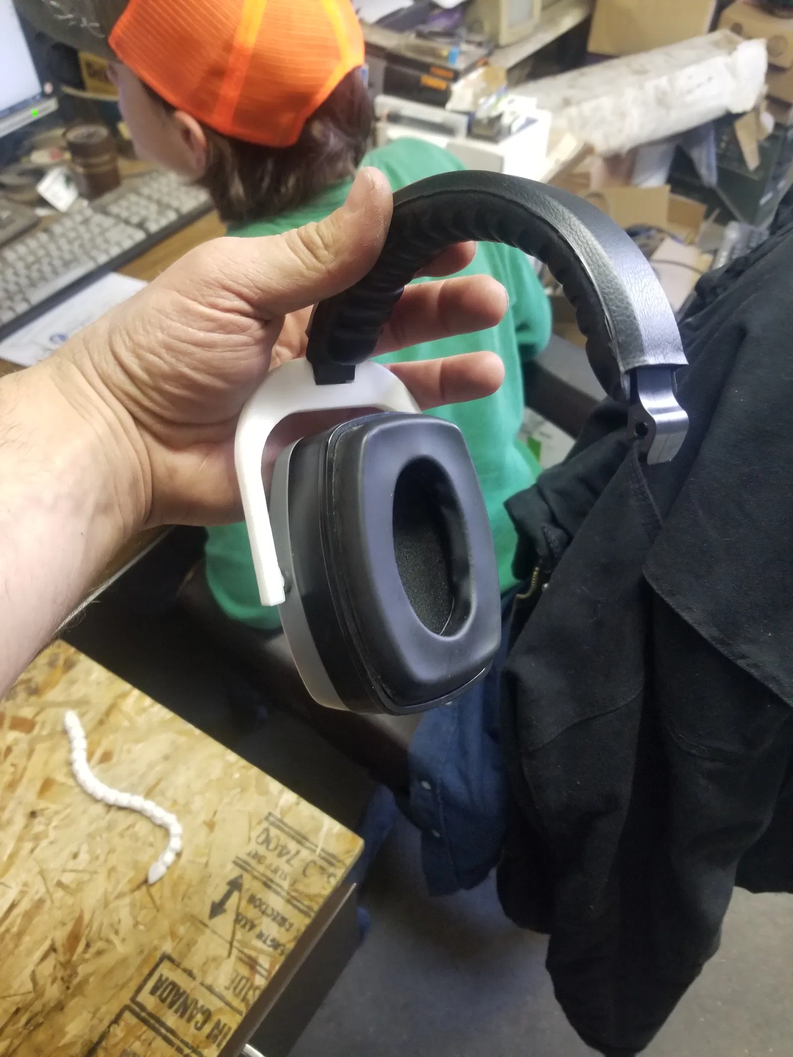 Kẹp nối giữa dây đeo đầu và chụp tai cho bộ bảo vệ tai.