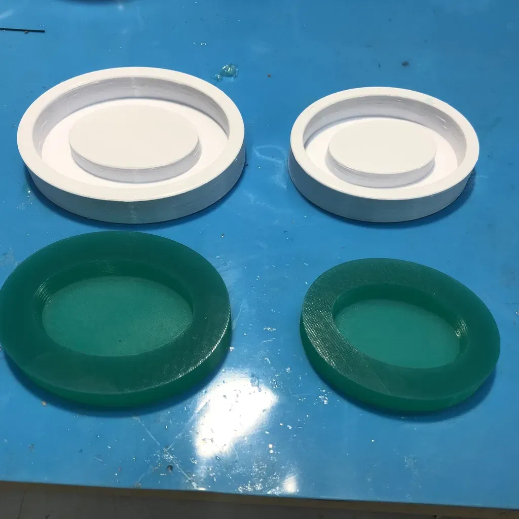 Coddle để làm khuôn cao su hình bầu dục In coddle sau đó lấp đầy bằng cao su silicon và lấp đầy nhựa màu.