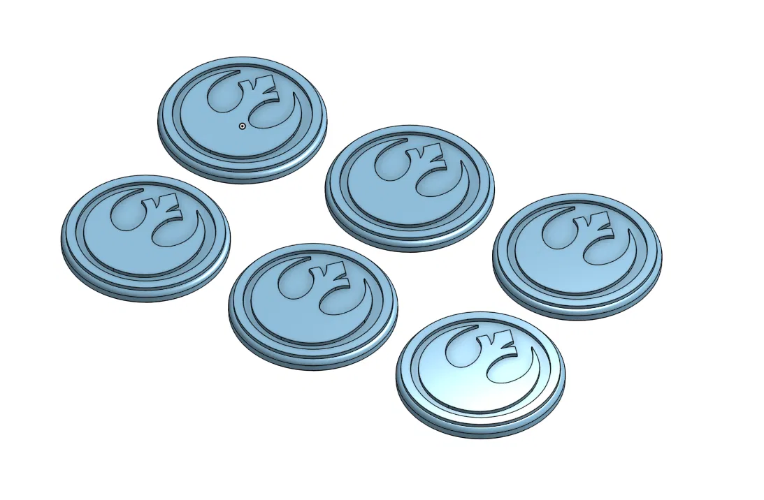 Tao muốn có mấy cái token xịn sò cho quân rebel của Star Wars Legion nên tao thiết kế mấy cái này. Bạn có thể in đa màu bằng cách đổi màu. Tao cũng thiết kế token cho mấy phe khác của Legion luôn.
