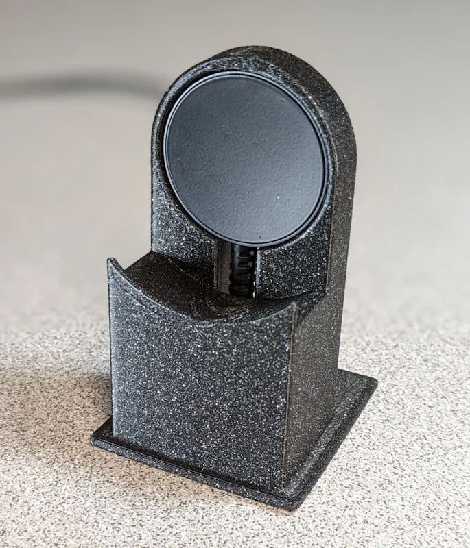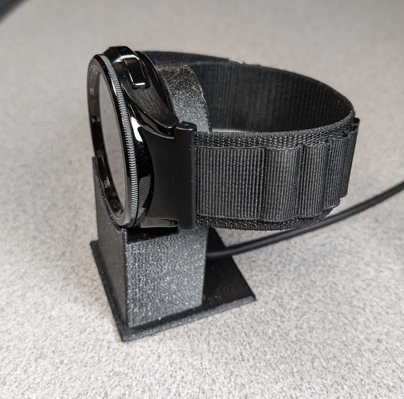 Cái đế này giữ đồng hồ "Samsung Galaxy Watch6 Classic" 43mm và sạc của nó. Bạn có thể dễ dàng lắp dây sạc vào đế. Người dùng đã thử nghiệm và chia sẻ cách in cho cả phiên bản 47mm.