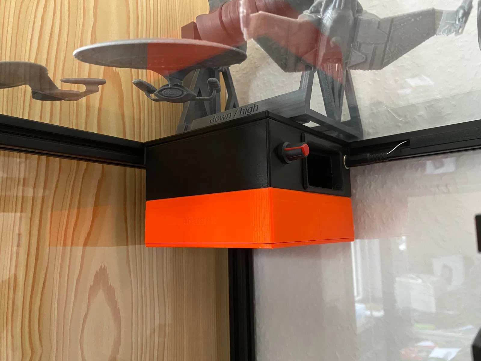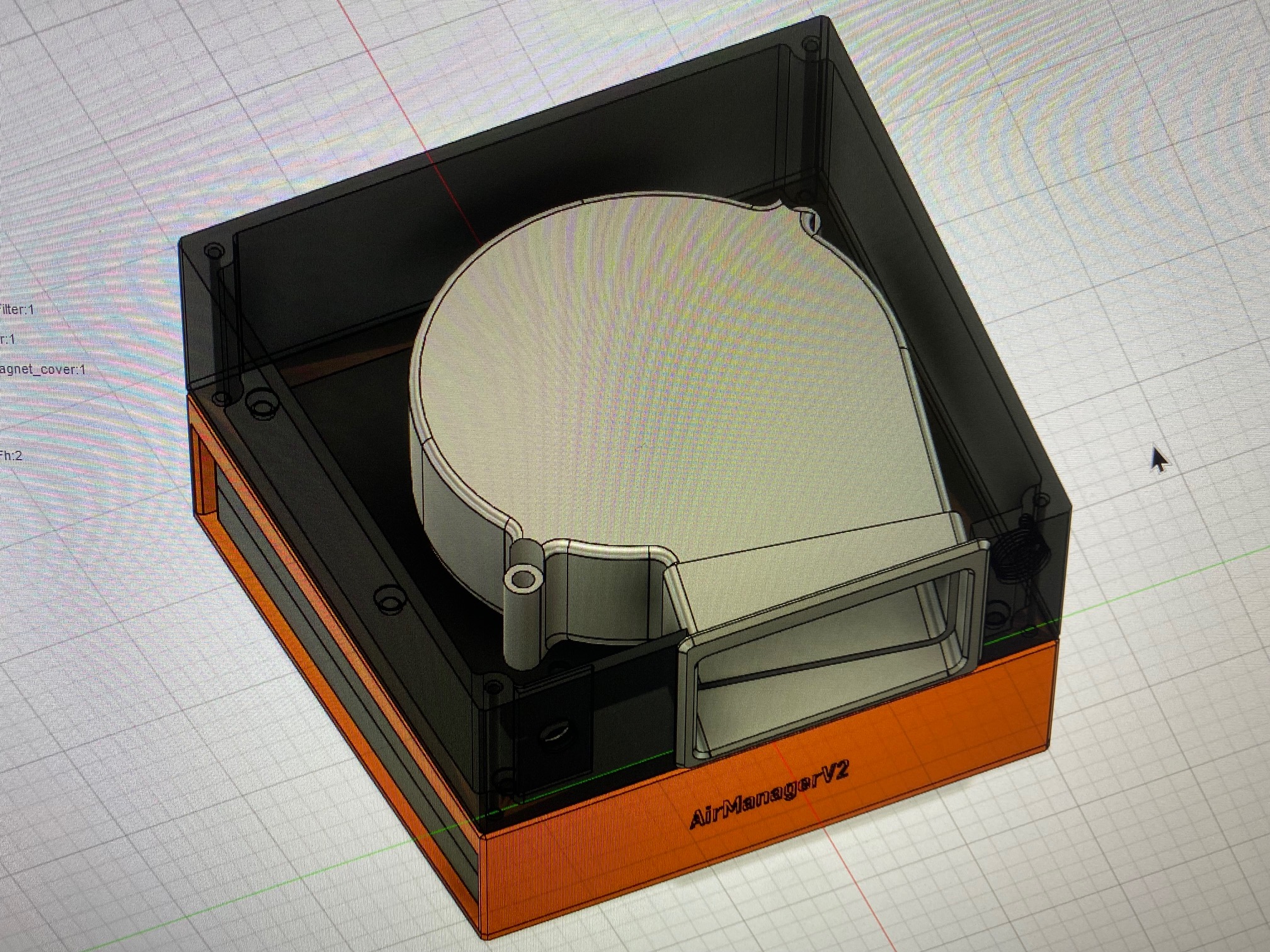 Phiên bản mod của giá đỡ AirManager, xoay quạt 15 độ để chừa chỗ cho phích cắm phía trước. Có đế nam châm gắn thanh nhôm 2020, cần 4 nam châm 10x3mm. Vỏ quạt và phễu được chỉnh sửa, đế PWM tùy chỉnh được.