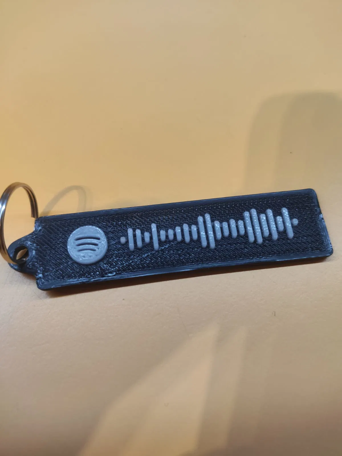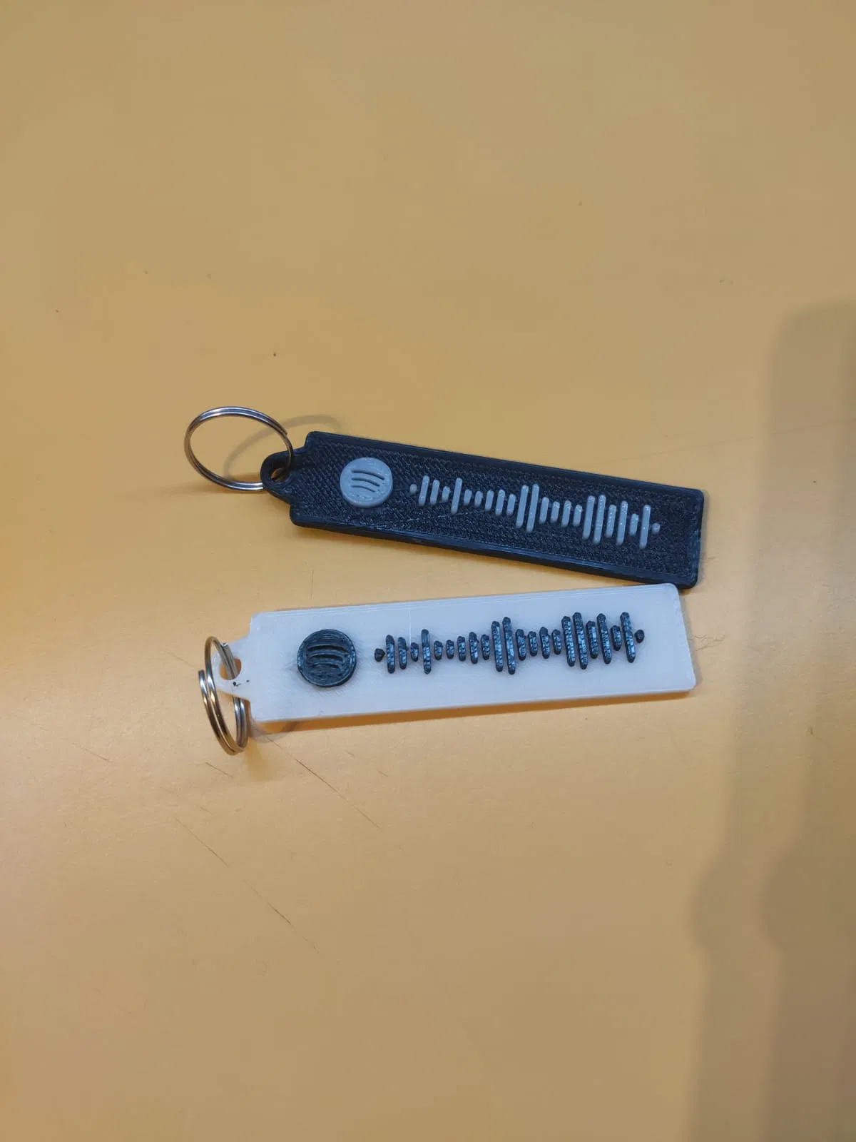 Móc khóa có mã Spotify cho bài "Niggas in paris" của Kanye West. Được in bằng PLA với 3 lớp thành và 4 lớp trên/dưới. Tham khảo video để đổi màu. Sử dụng 100% infill để tăng độ bền.