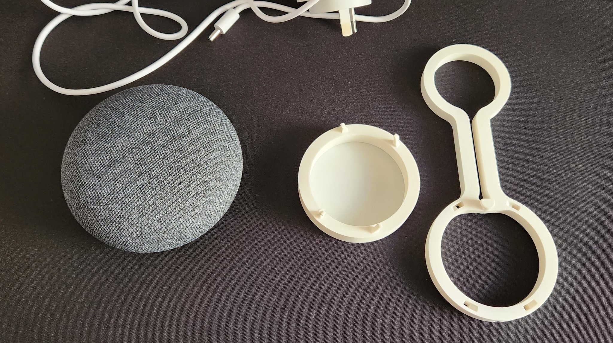 Thiết kế được dự định sẽ được sử dụng để dễ dàng treo loa Google Mini từ ổ cắm/ổ cắm điện tường.