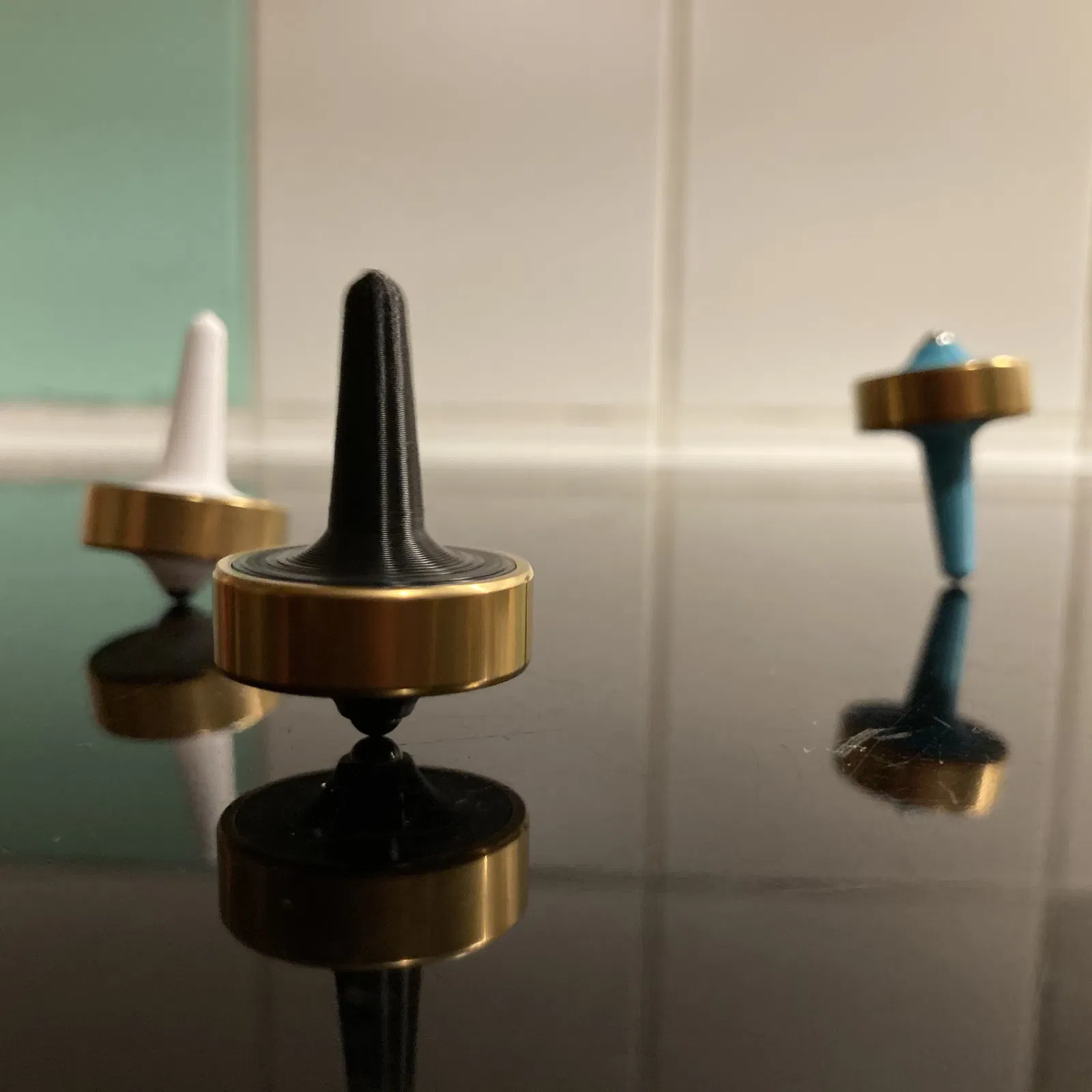 - Gắn viên bi thép vào lỗ ở chóp con quay