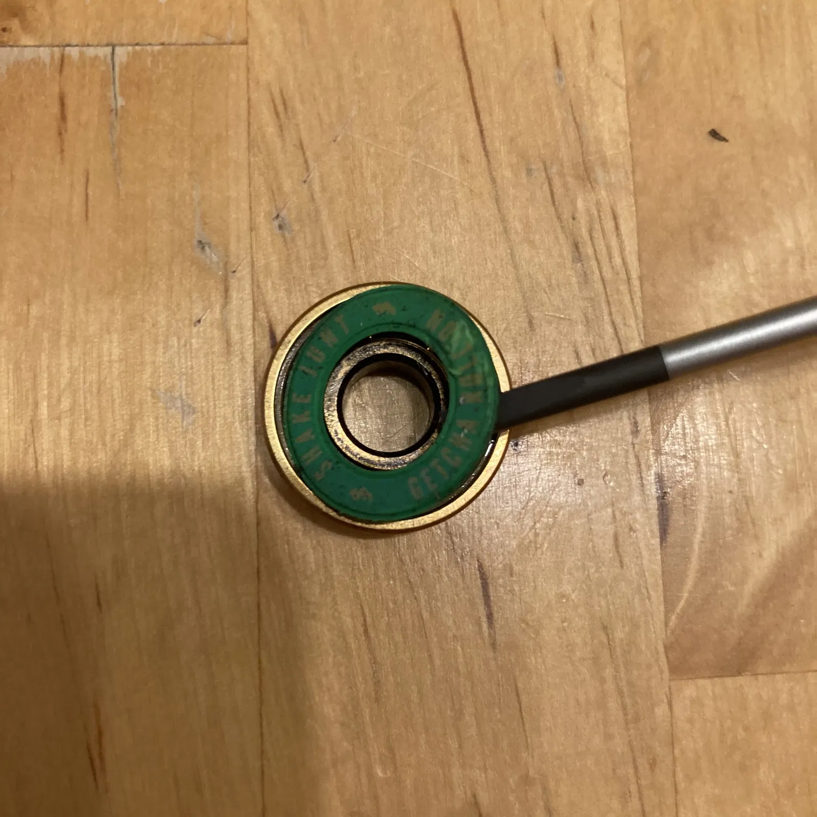 Cái con quay mini này đúng là "khủng" thiệt! Bạn sẽ quay nó ít nhất 3-4 phút trên mặt phẳng ngon lành ( kỷ lục của mình là 7:17) Bạn sẽ cần một vòng bi cũ loại 8 x 22 x 7 mm – có lẽ là loại phổ biến nhất. Cứ hỏi mấy tiệm đồ trượt hay chỗ trượt ván gần nhà là y như rằng có người dư xài.