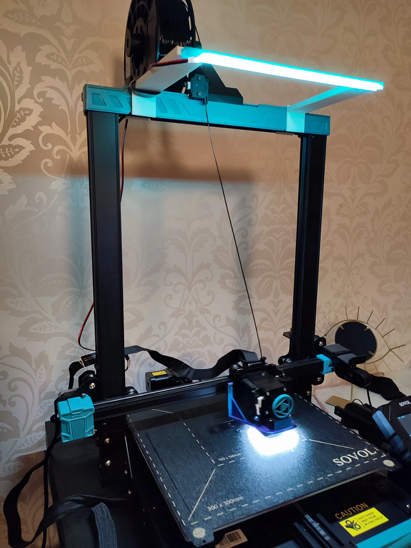 Giá đỡ đèn LED đơn giản cho Sovol SV07 Plus. Tui dùng dải LED 24V rộng 8mm mua trên Aliexpress và đấu nối vào cổng aux fan vì tui không xài tới nó.
