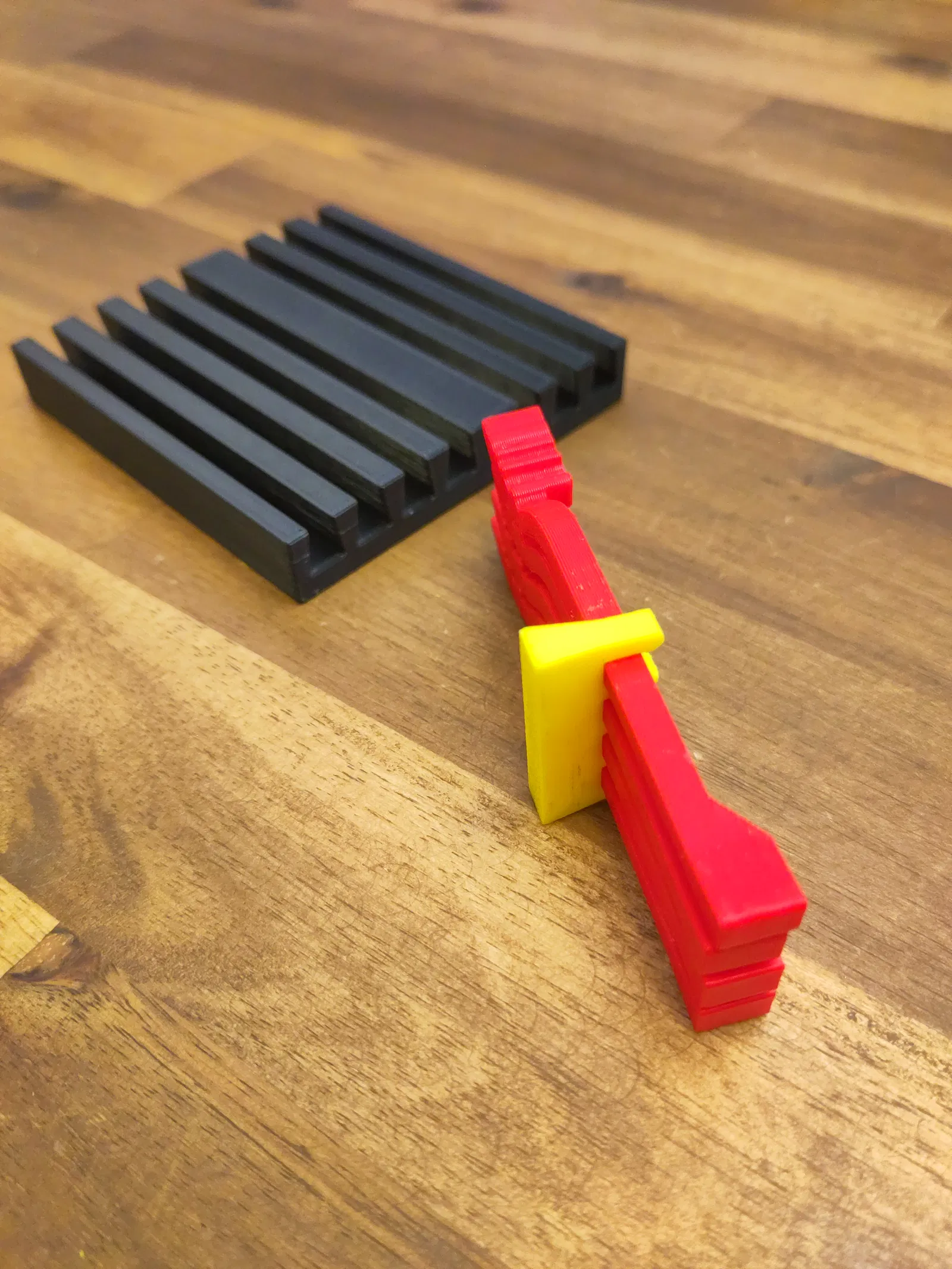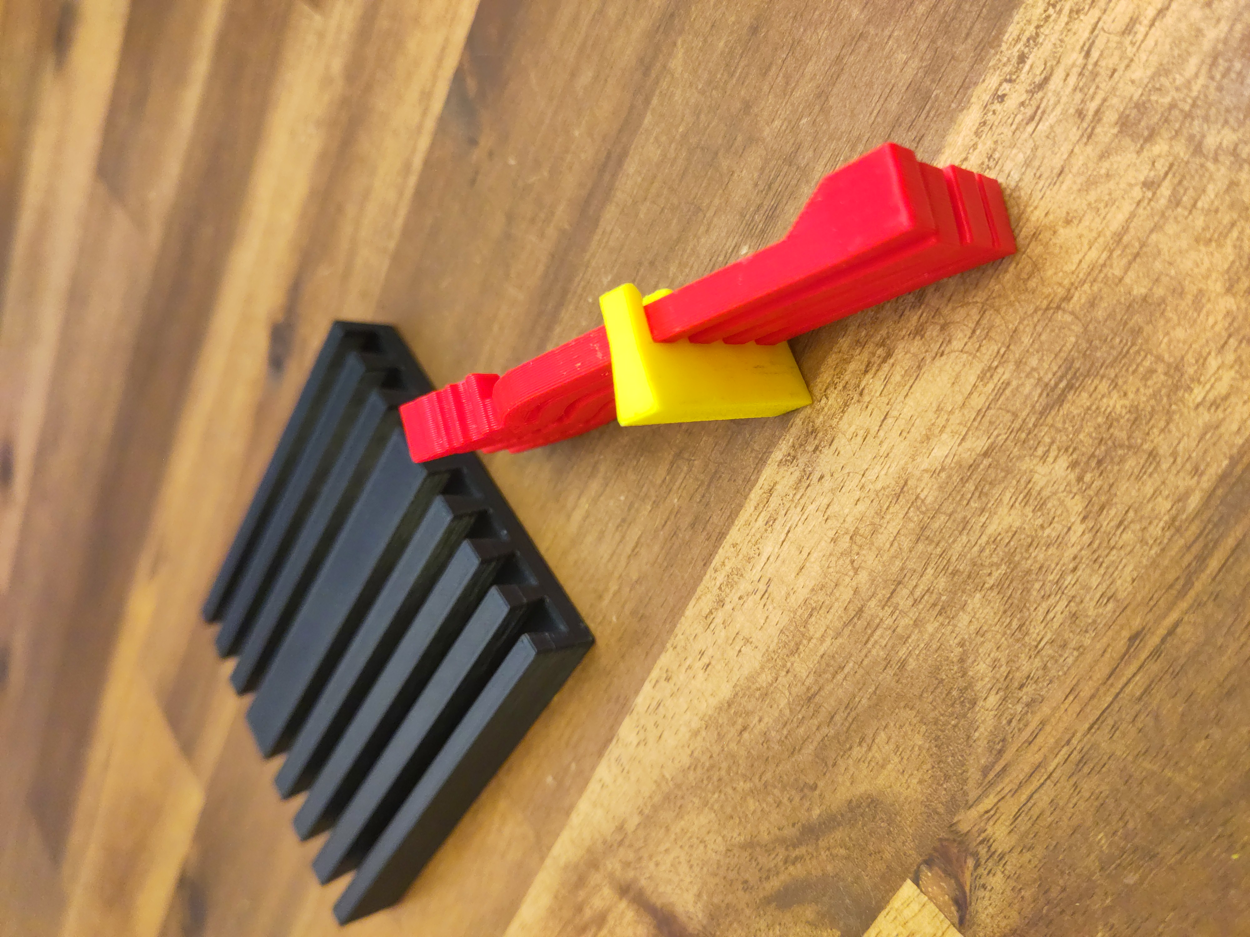 Thiết kế được lựa chọn để dễ dàng in ấn. Nếu bạn in các bộ phận kẹp với độ dày lớp 0,3, thì thanh dẫn sẽ chặt hơn một chút và cung cấp nhiều lực giữ hơn. Tôi đã in mọi thứ với độ dày 0,2 và mọi thứ khớp với nhau rất tốt.