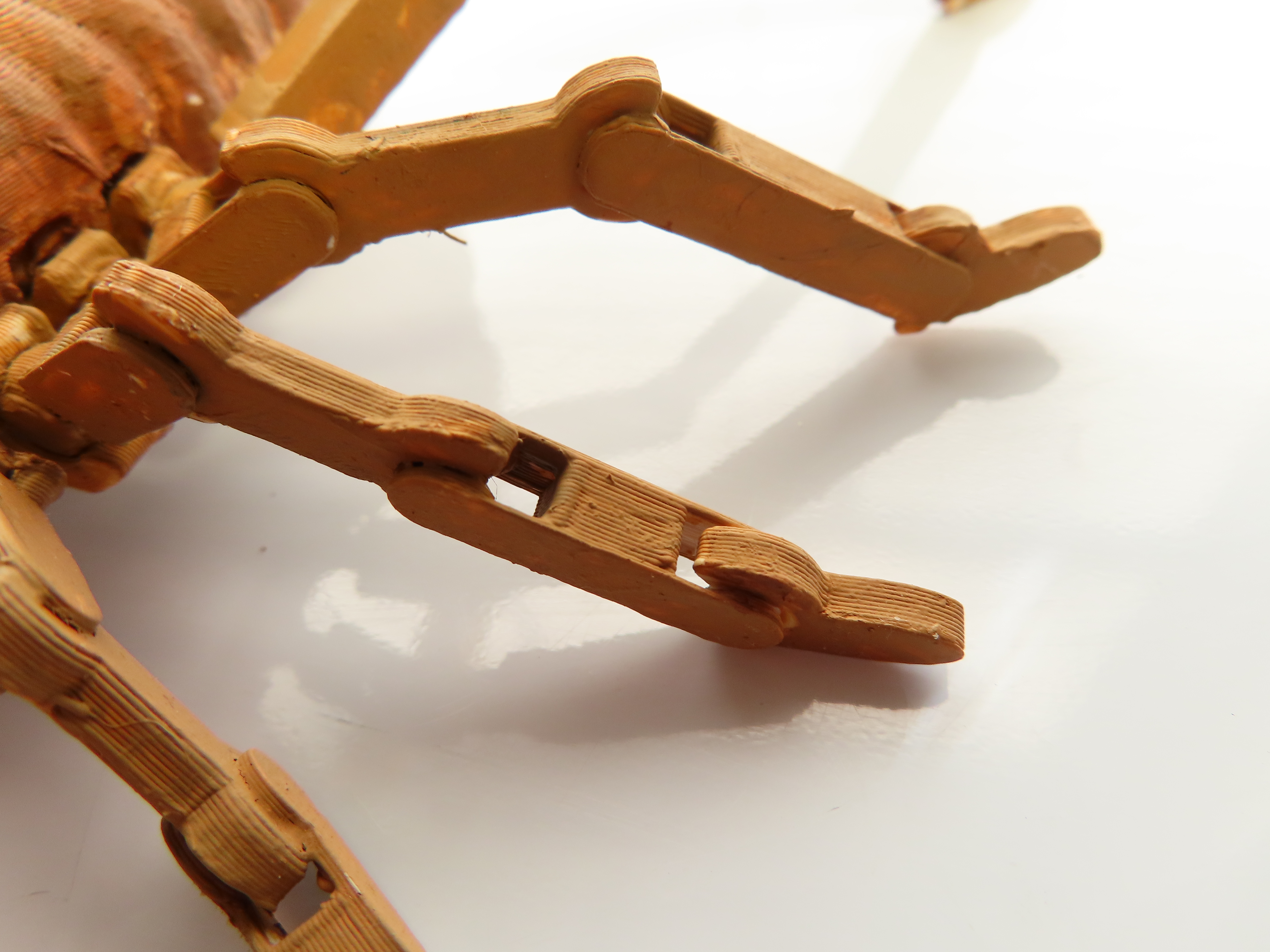 - Đầu tiên, lắp ráp chân bằng cách gắn các bộ phận từ mỗi file chân (leg-1.stl, leg-2.stl, v.v.) lại với nhau và lắp mỗi chân hoàn chỉnh vào khớp bi chân (leg-ball-joints.stl):