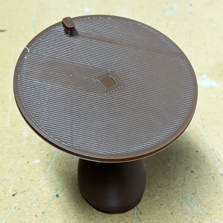 Mô hình gồm 2 phần đế và nắp, không cần in vật liệu hỗ trợ. In phần thân thẳng đứng và phần nắp đặt trên mặt phẳng. Bạn không cần dùng keo để dán lại.