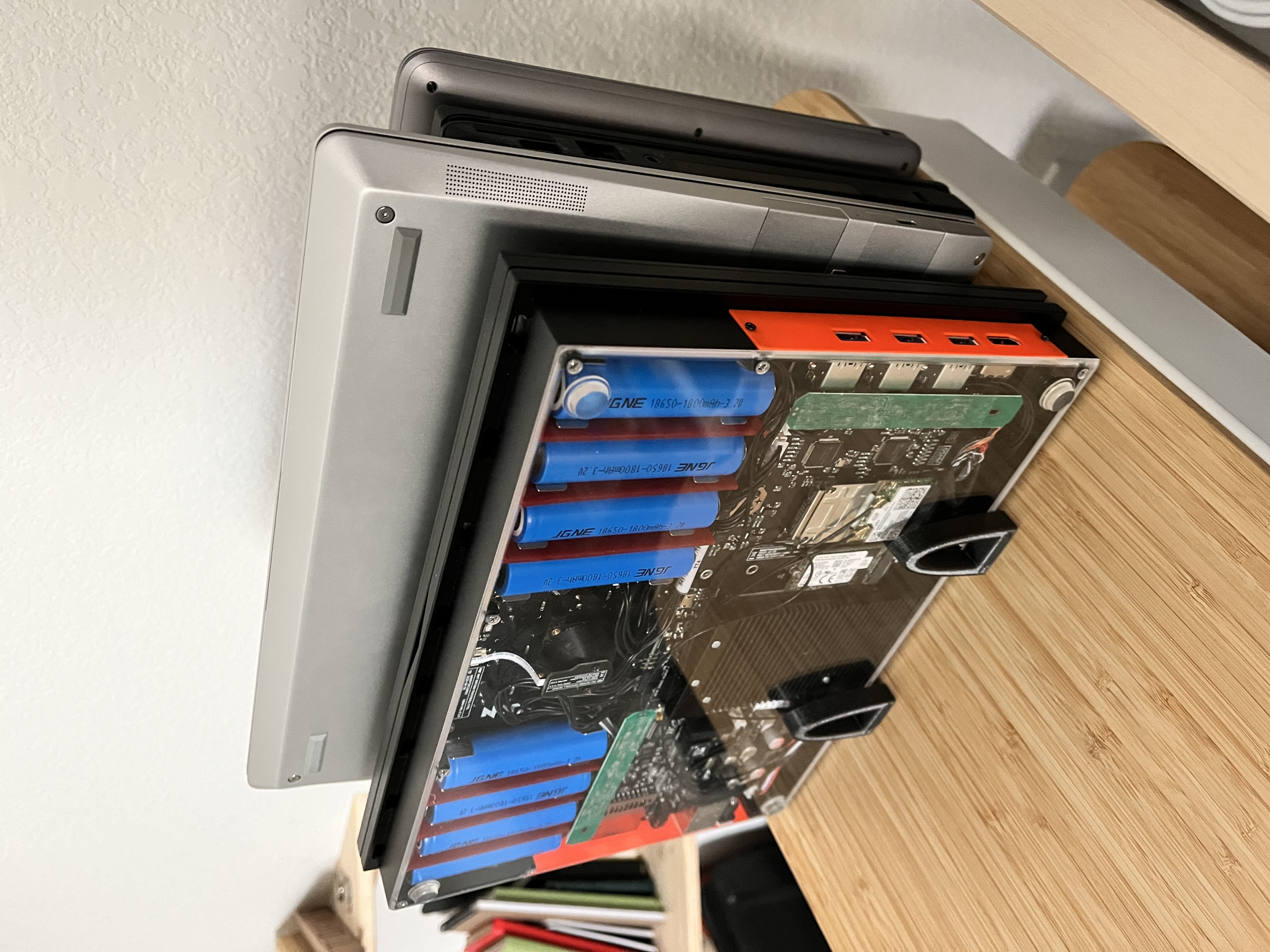Chân đỡ laptop này có thể chỉnh kích cỡ cho vừa với mọi loại laptop. Đang được dùng để dựng laptop Lenovo x230, Framework 13, và MNT Reform.