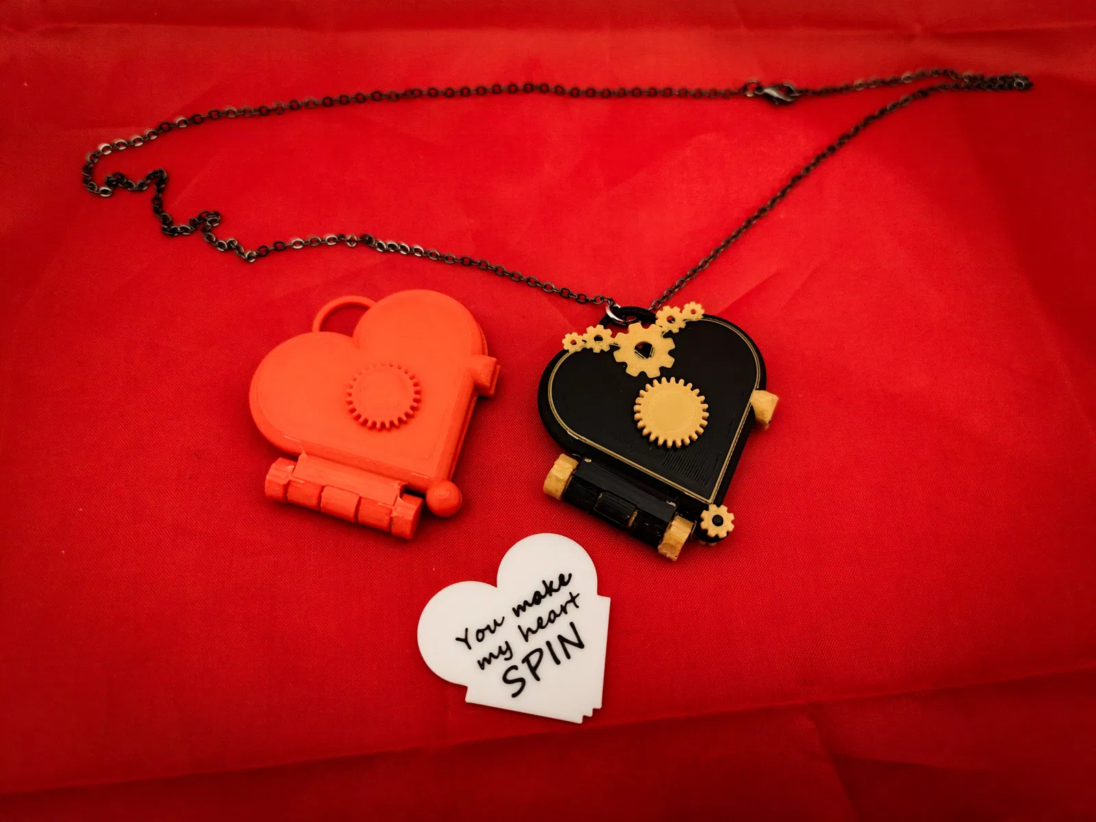 Mặt dây chuyền Valentine hoạt động được, có bánh răng xoay, bản lề in-in-place và ruột có thể tháo rời. Có nhiều thiết kế và lựa chọn màu sắc. Hoàn hảo làm quà tặng Valentine ý nghĩa.